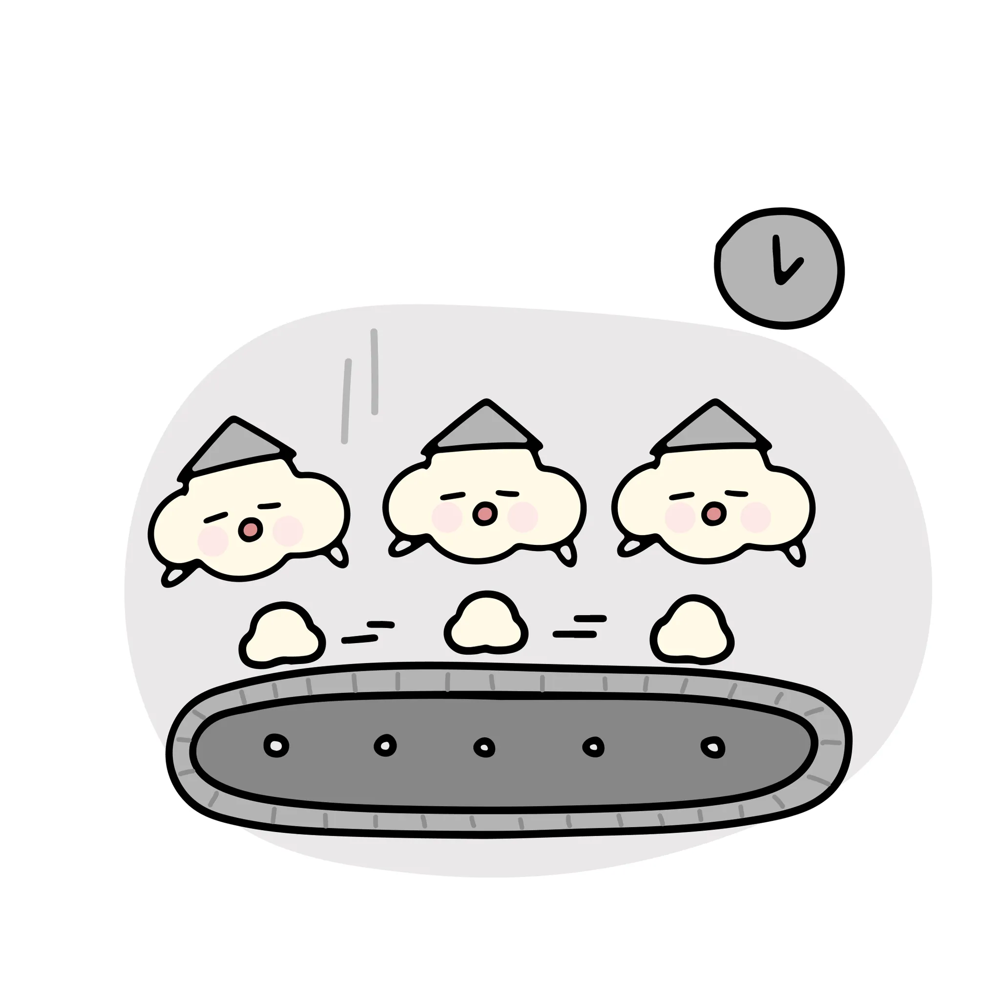 매일 같은 옷, 같은 빵, 같은 공장.. 그리고 빙글빙글 돌아가는 컨베이어벨트 위의 빵을 보는 나.