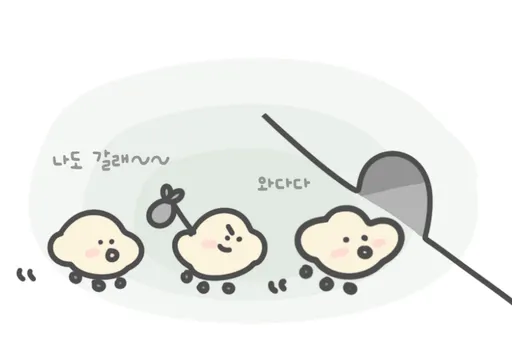 드르륵 착. 드르륵 착. 그러다 가끔씩 덜커덩! 하고 잘 못 만들어진 슈크림을 수거함에 넣어.