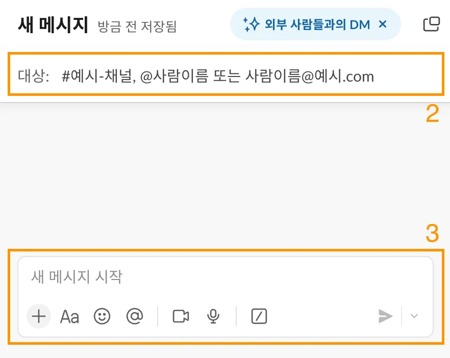 DM을 보내고 싶은 사용자 이름 또는 채널을 입력합니다.