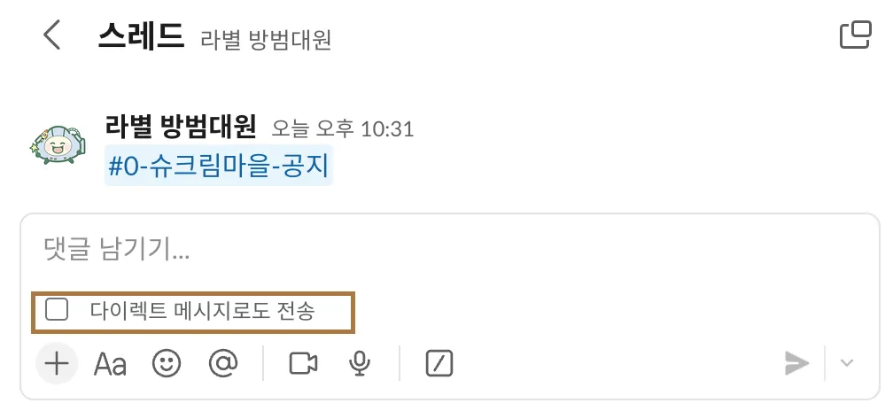 해당 스레드가 있는 채널 또는 DM에 똑같은 내용이 한 번 더 전달됩니다.