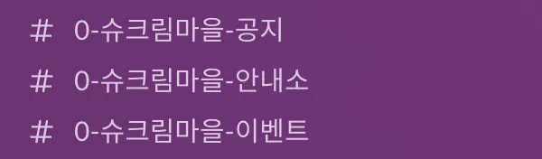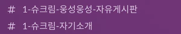 슈크림 마을에서는 주제에 따라 구분된 채널에서 슈크림들이 모여 대화할 수 있어! (งᐛ)ว (งᐖ )ว