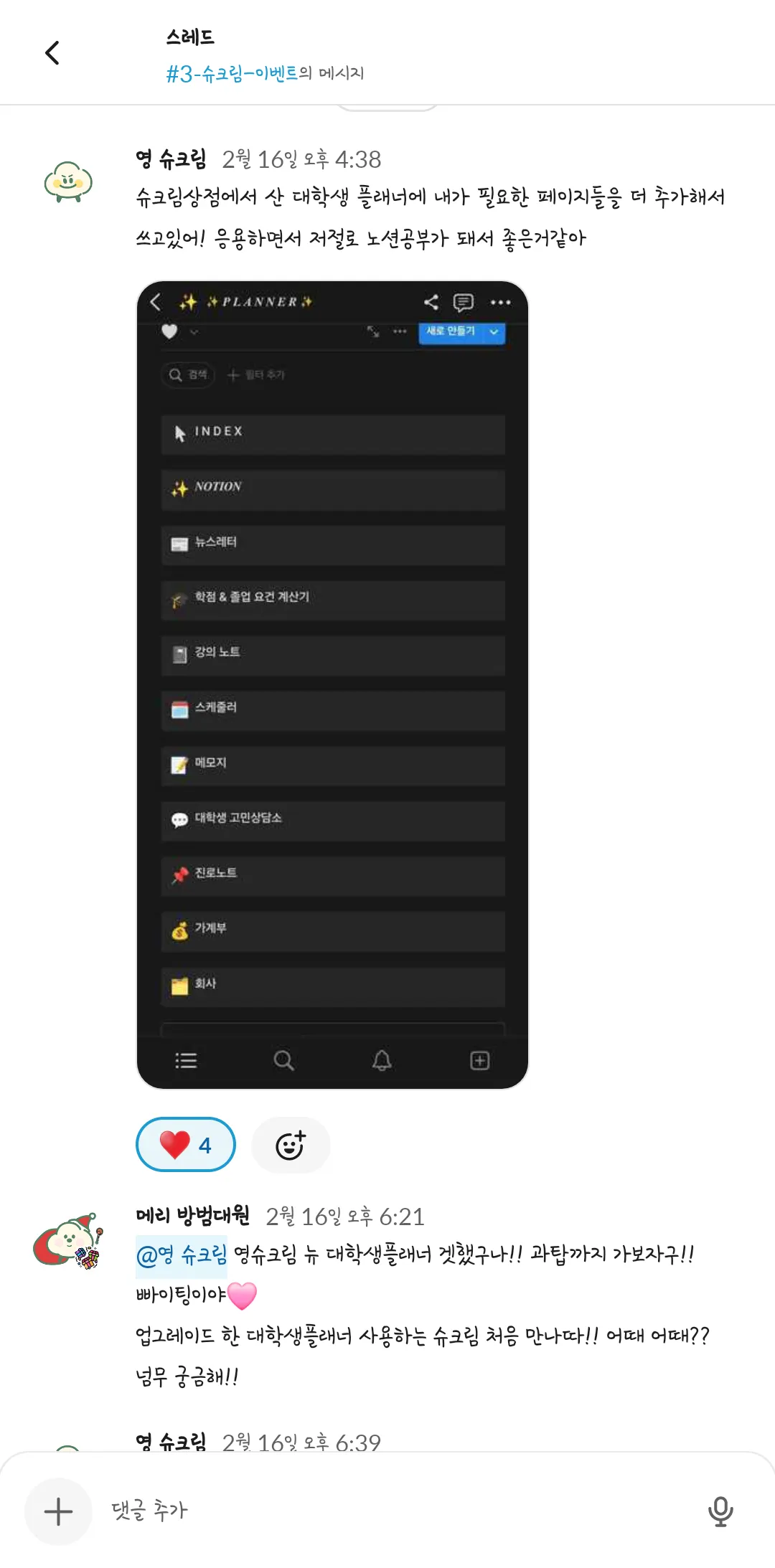 슈크림 마을 소식