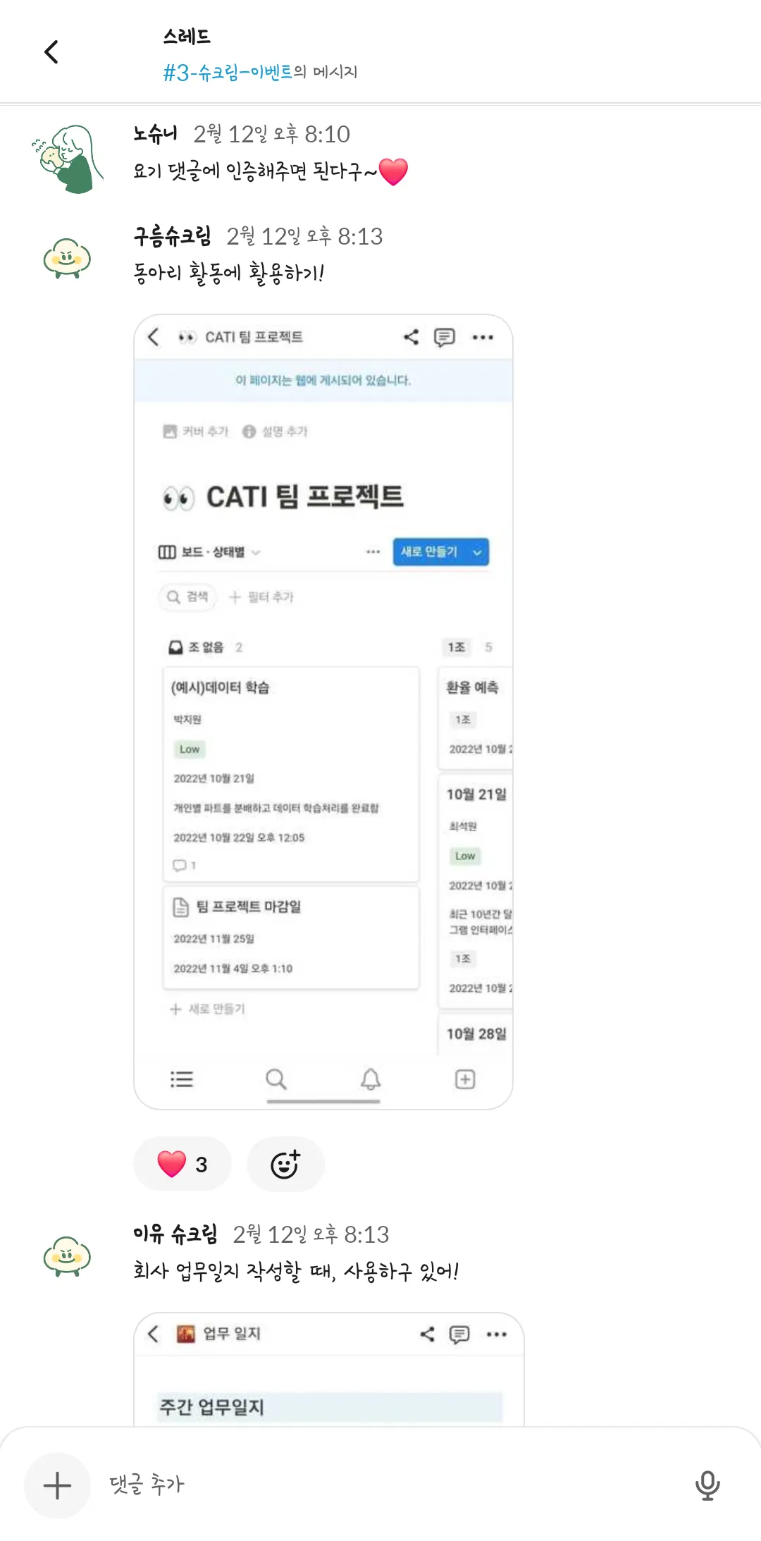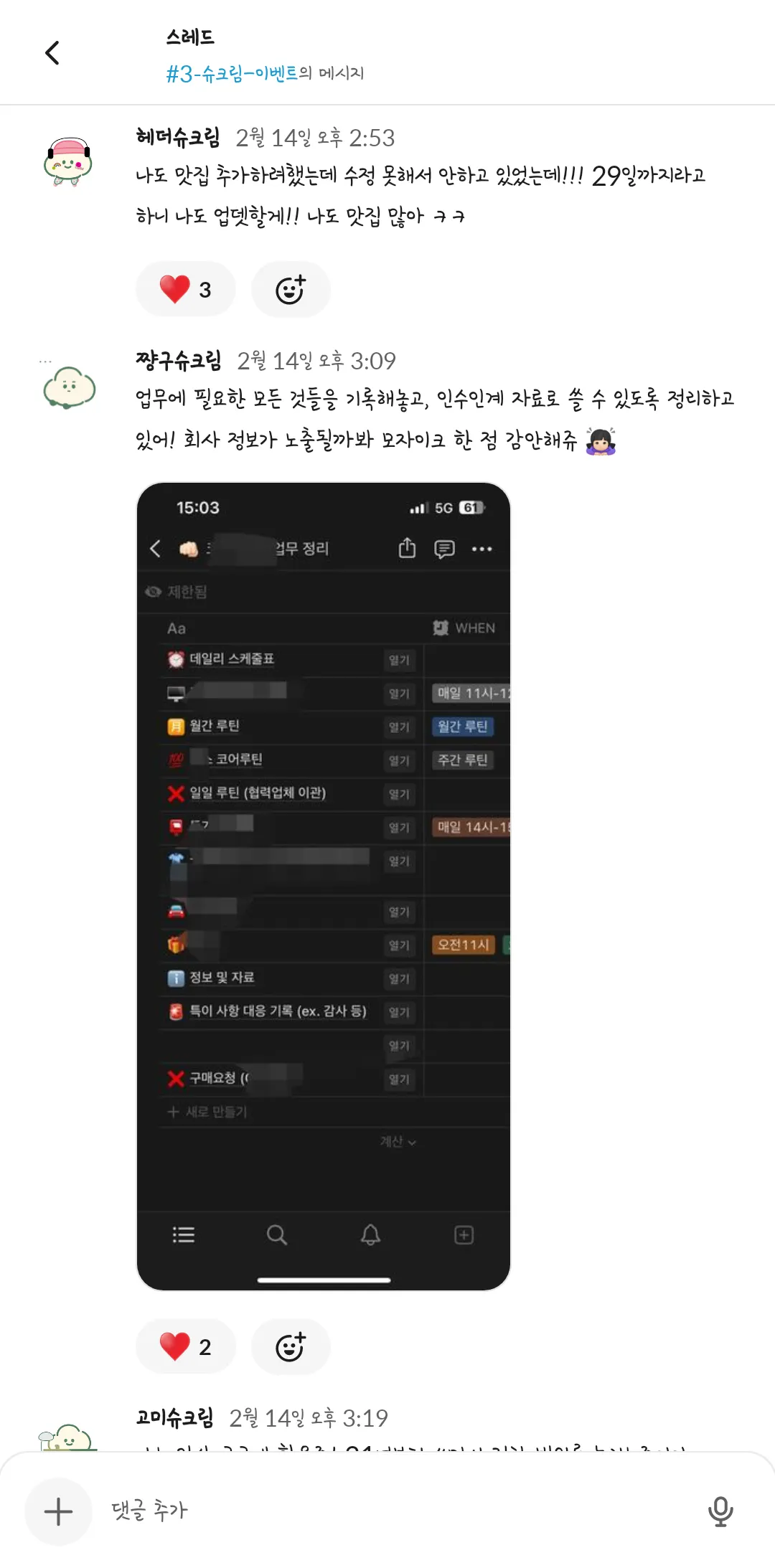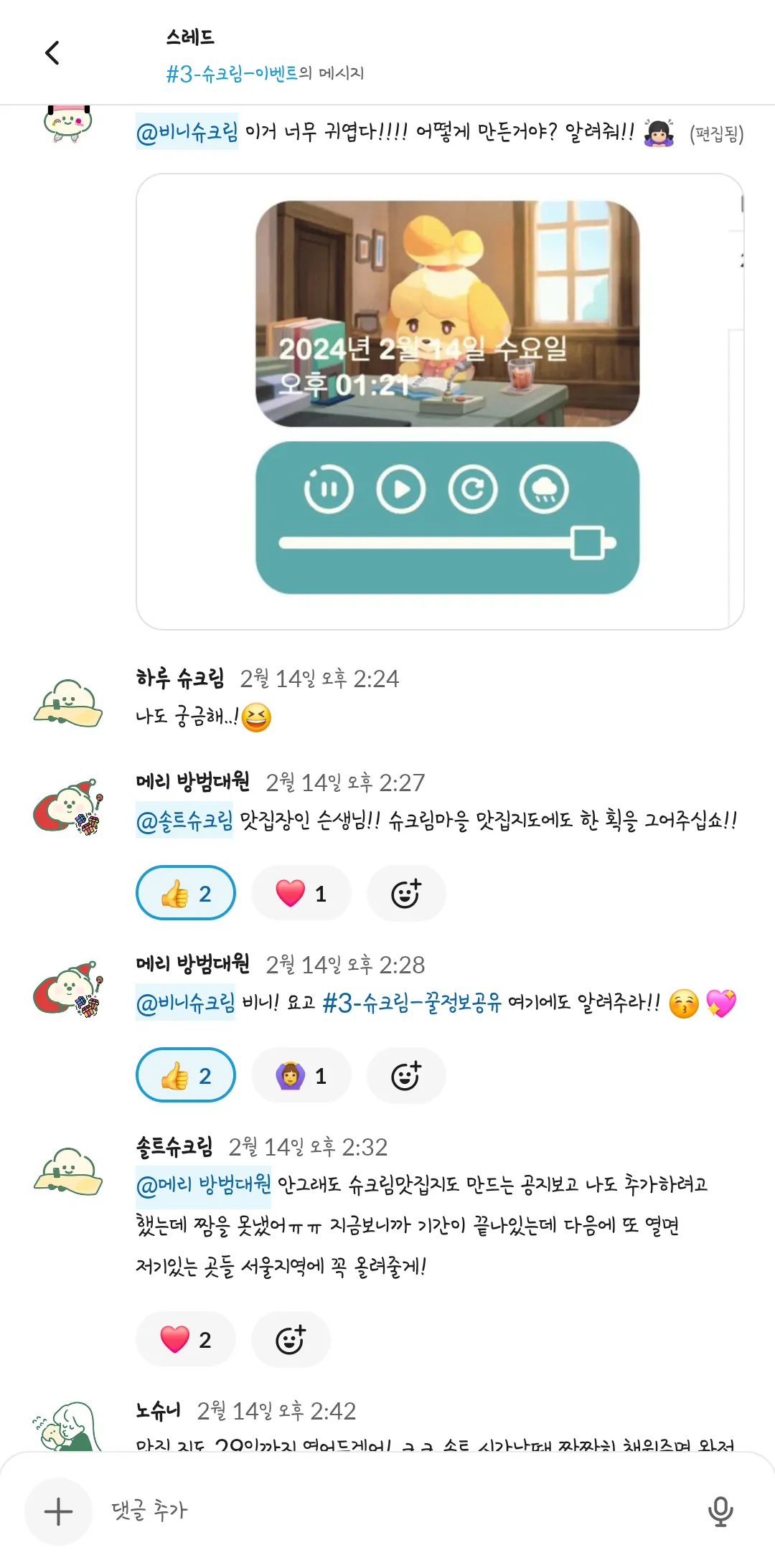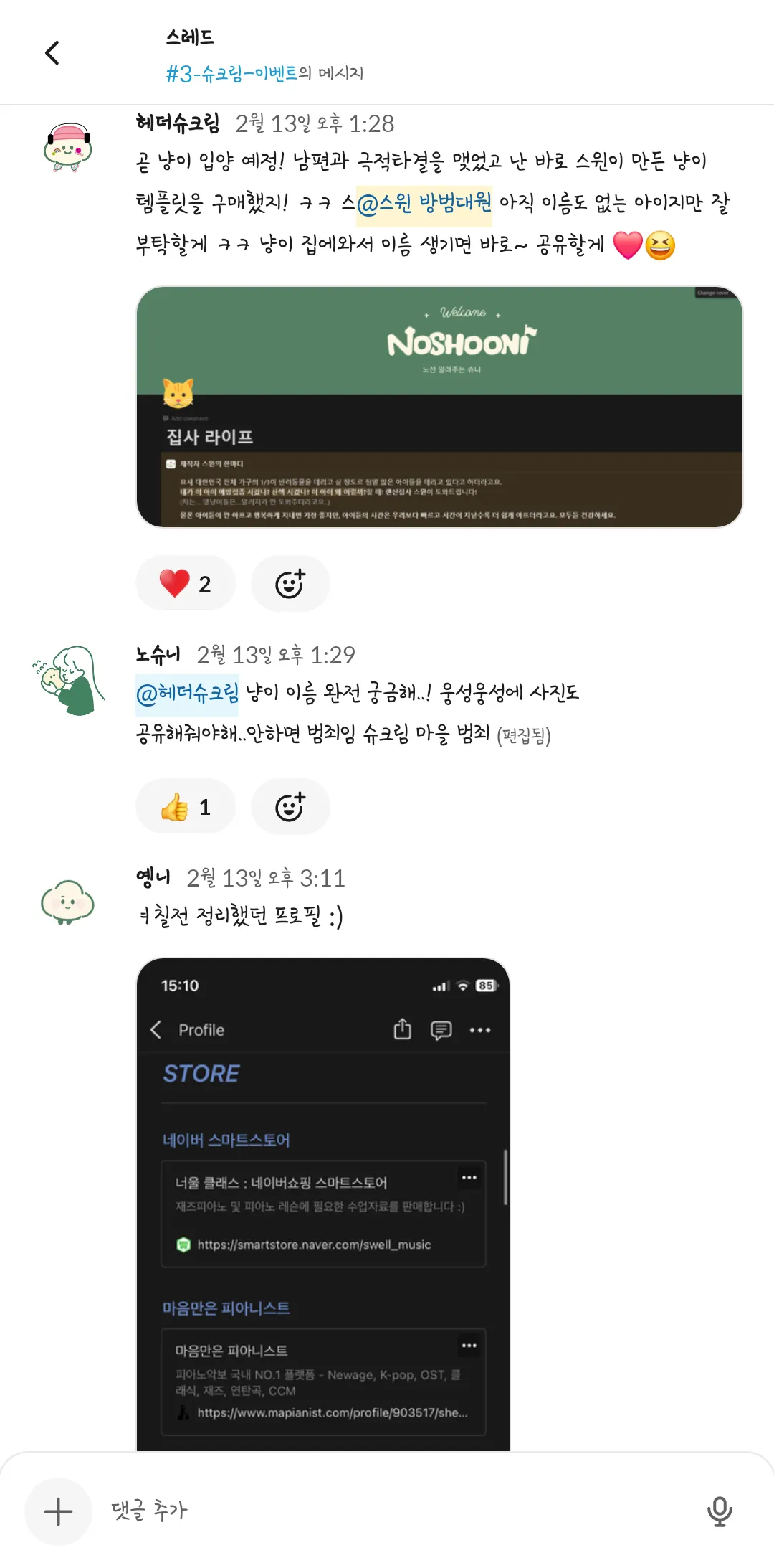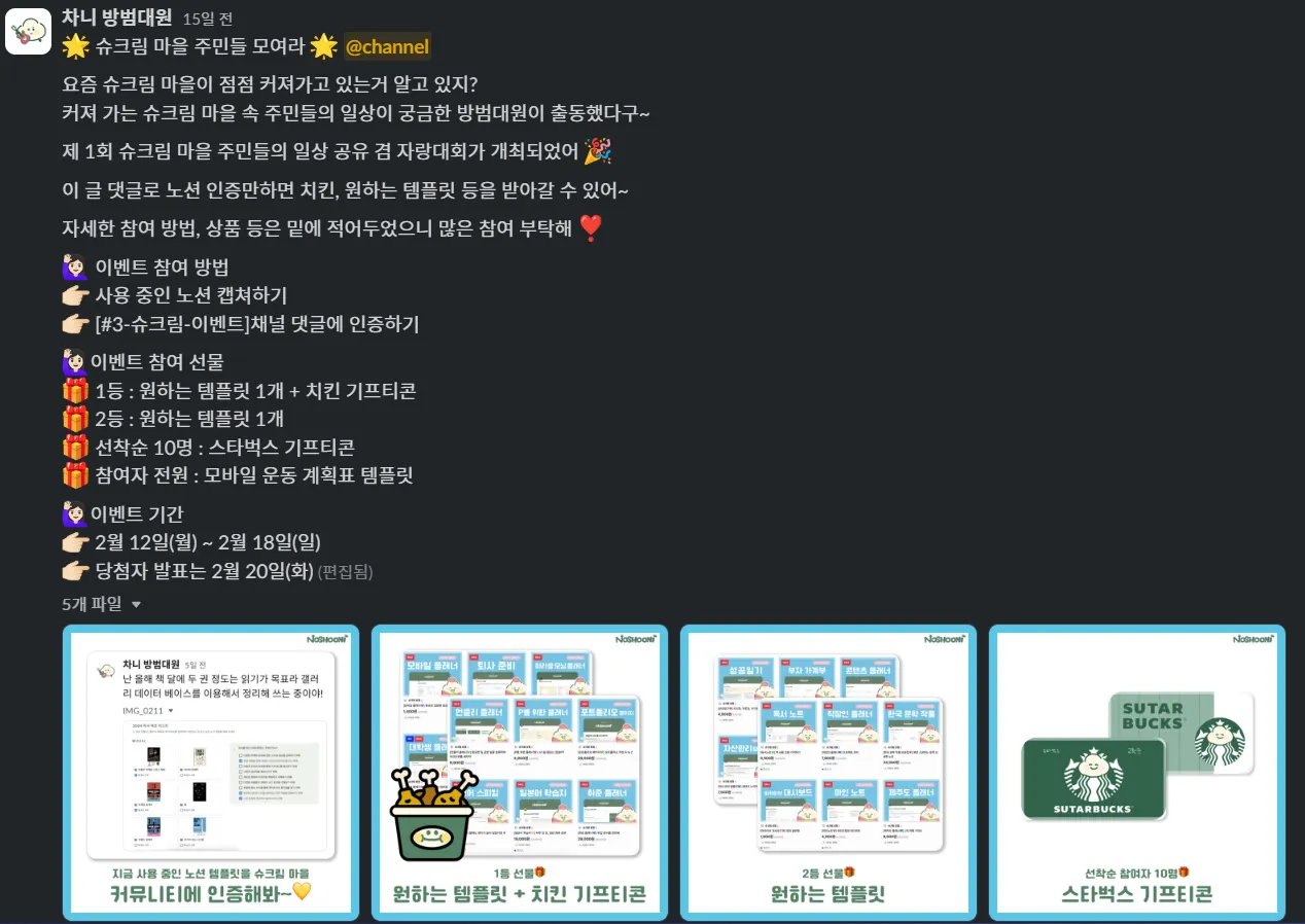 제 1회 슈크림마을 주민 일상공유 겸 자랑대회