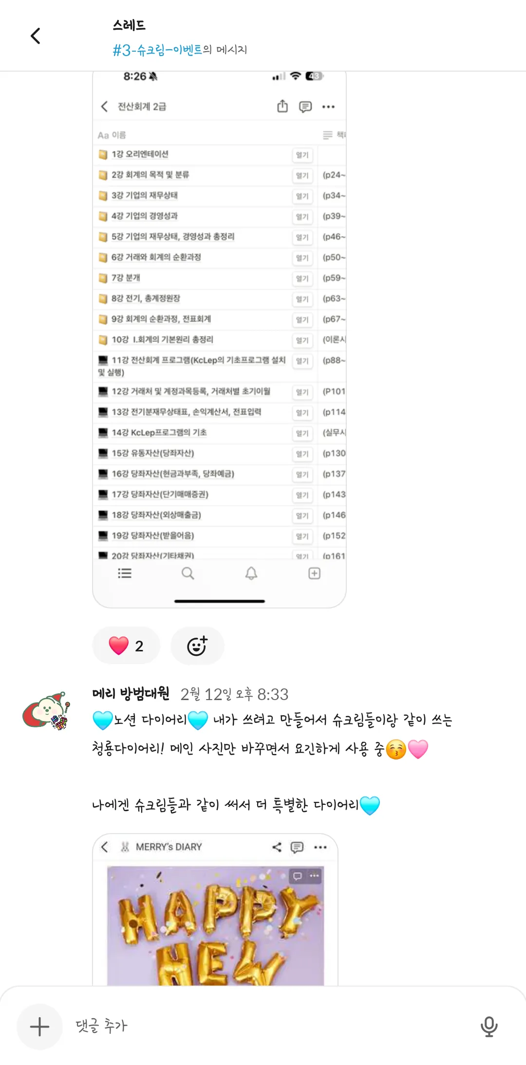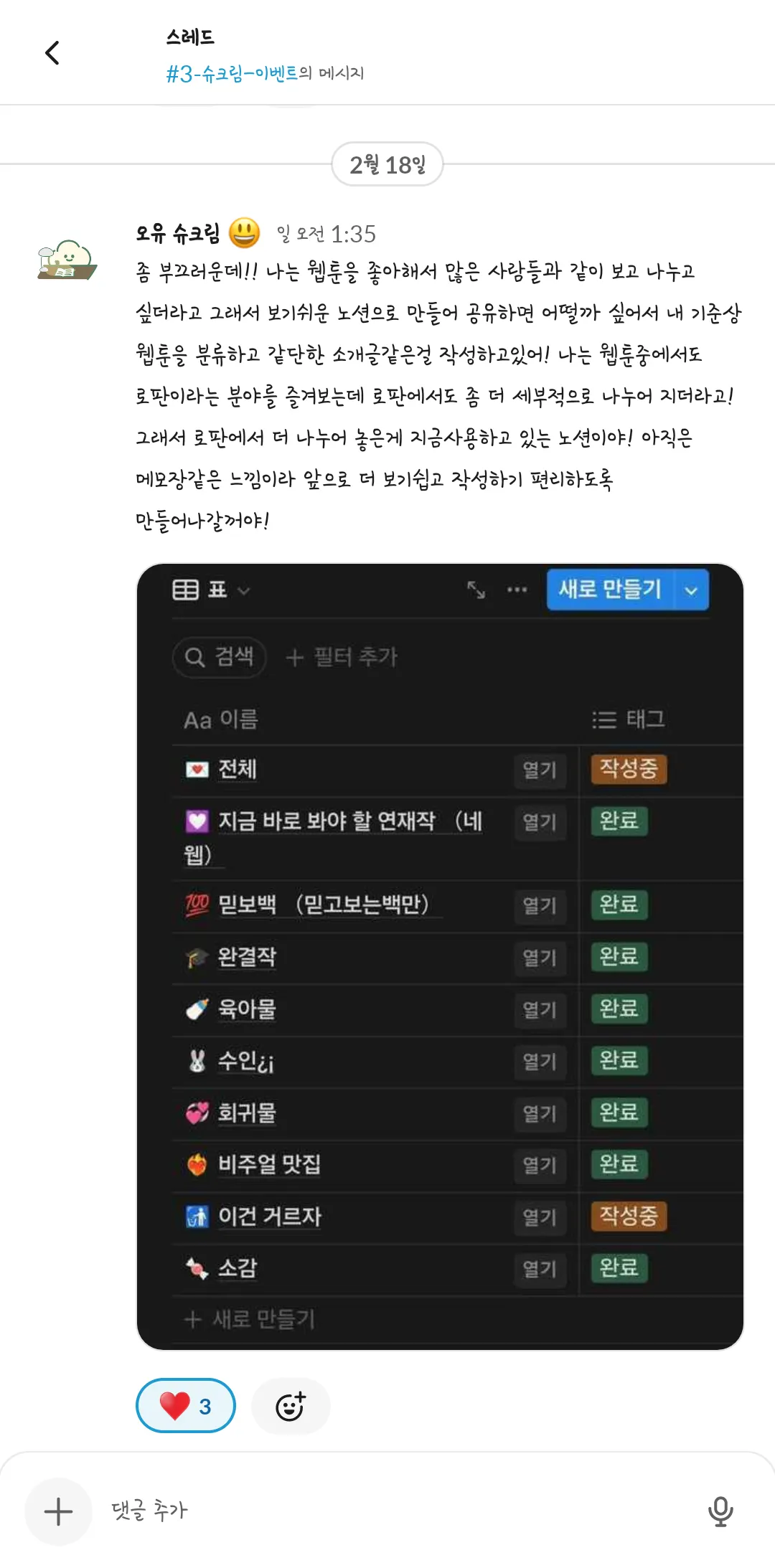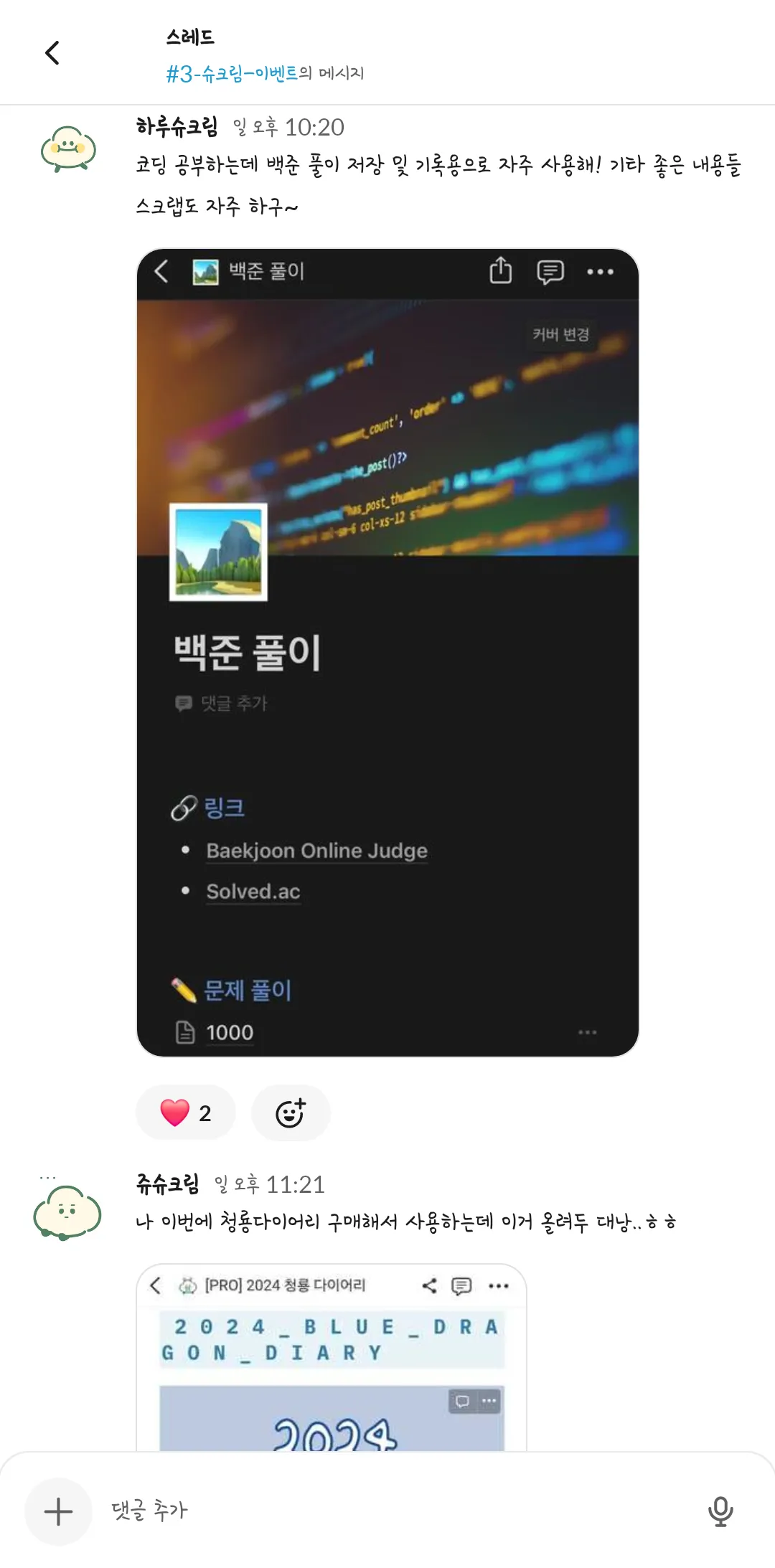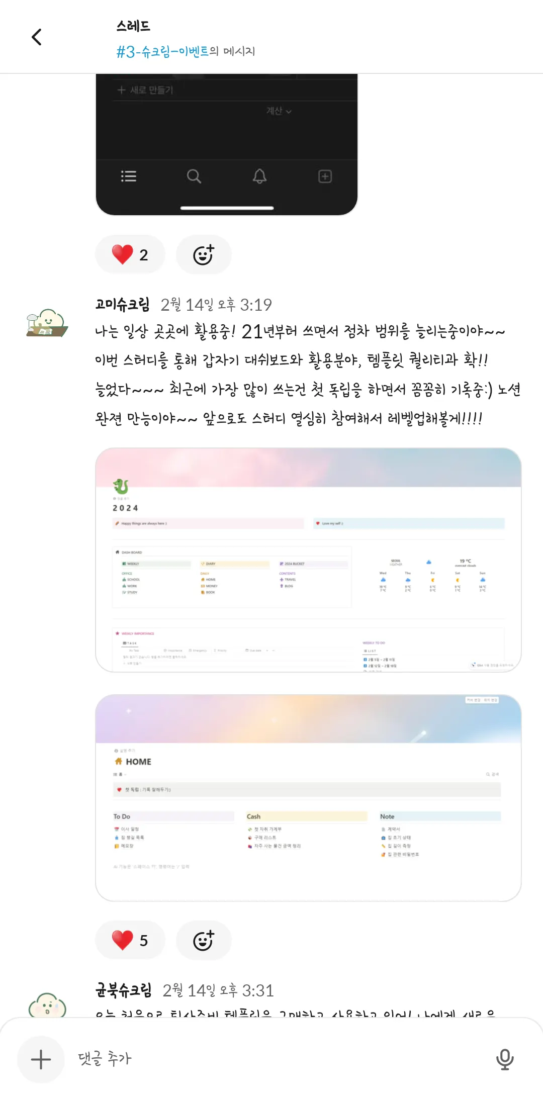 제 1회 슈크림마을 주민 일상공유 겸 자랑대회