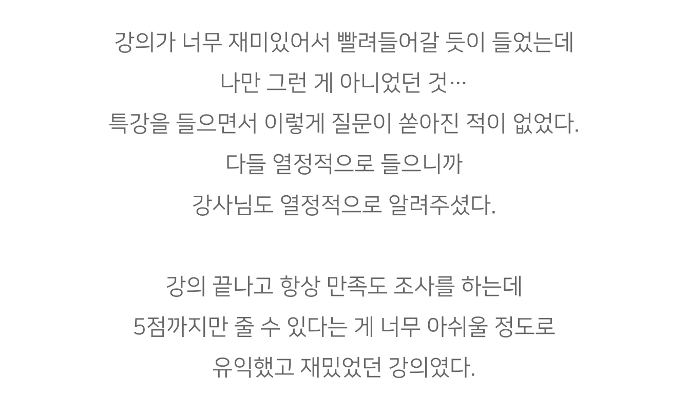 강의가 너무 재미있어서 빨려들어갈 듯이 들었는데