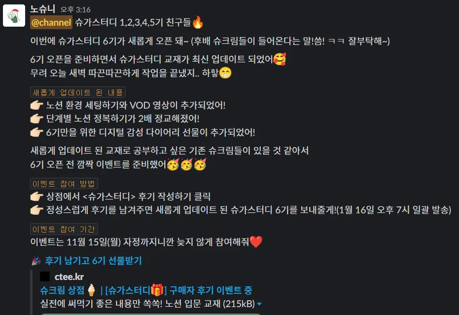 슈가스터디 6기 업데이트