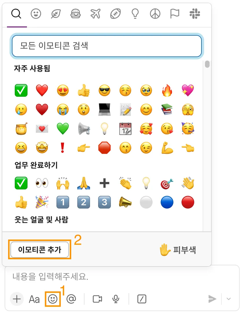 채팅 입력칸 하단의 [웃는 얼굴]을 누릅니다.