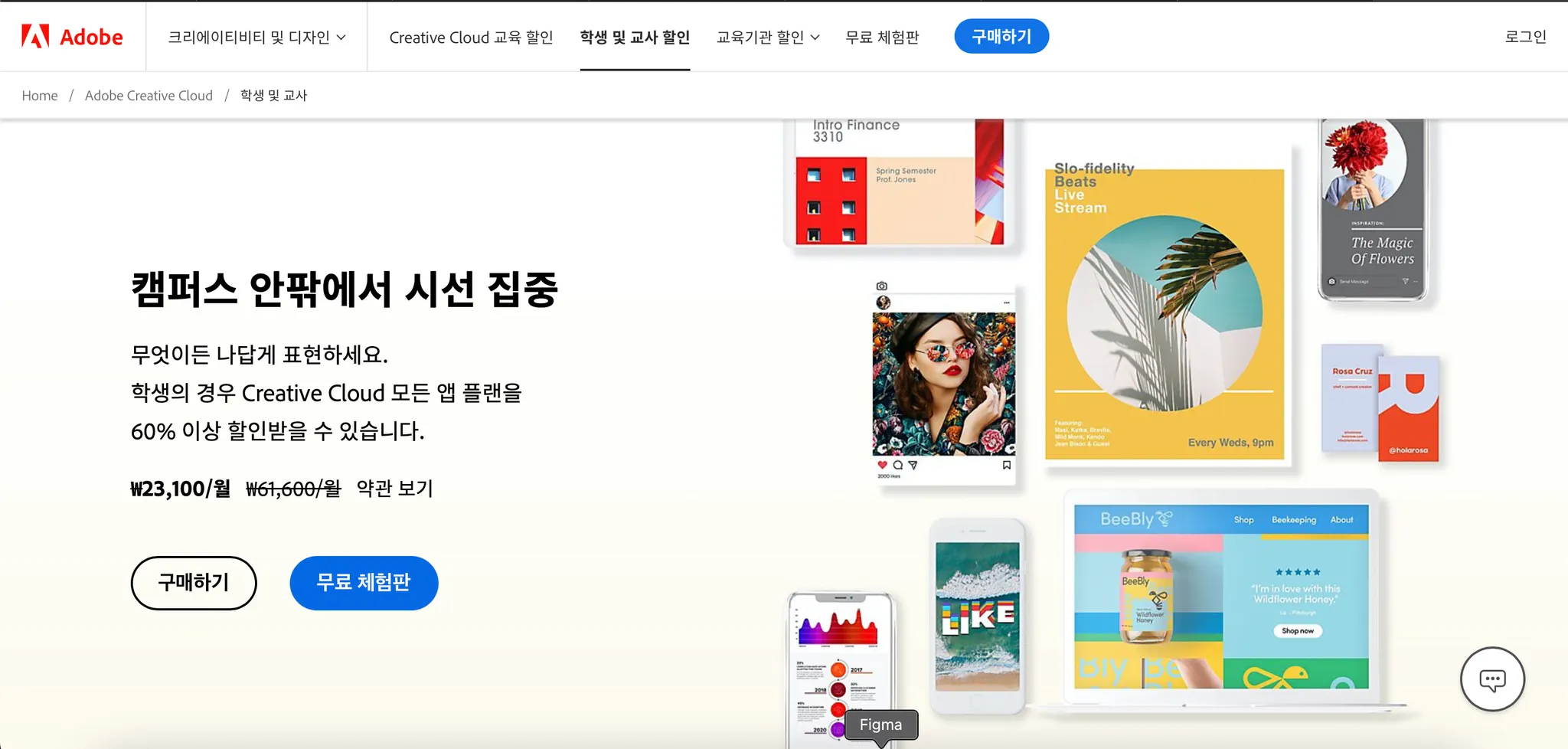 어도비는 학생할인으로 60% 할인을 받아도.. 월 23,100원을 내야한대..