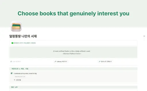 그러다가 노션 템플릿으로 서재 겸 필사노트를 만들면 어떨까?라는 생각을 하게 되었고,