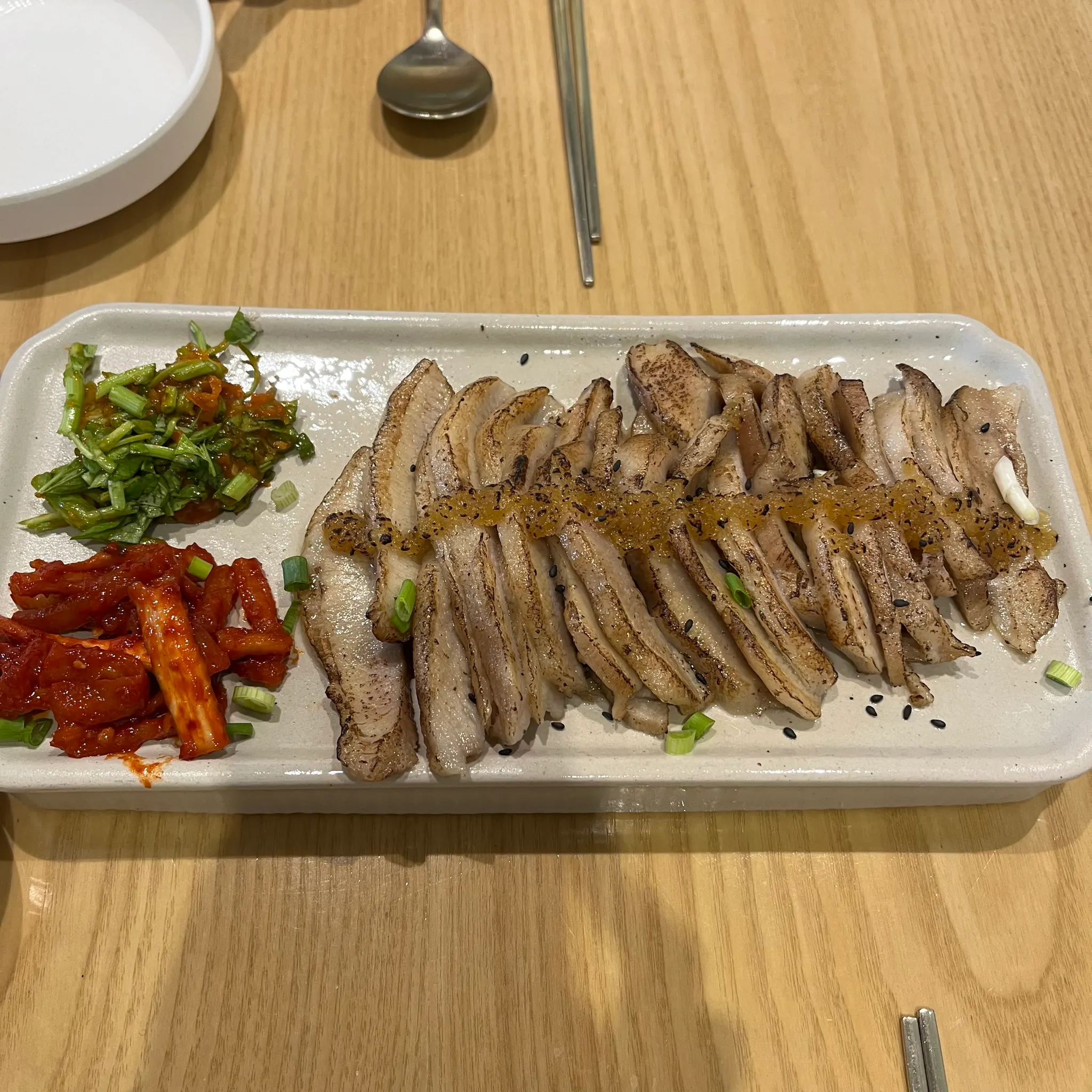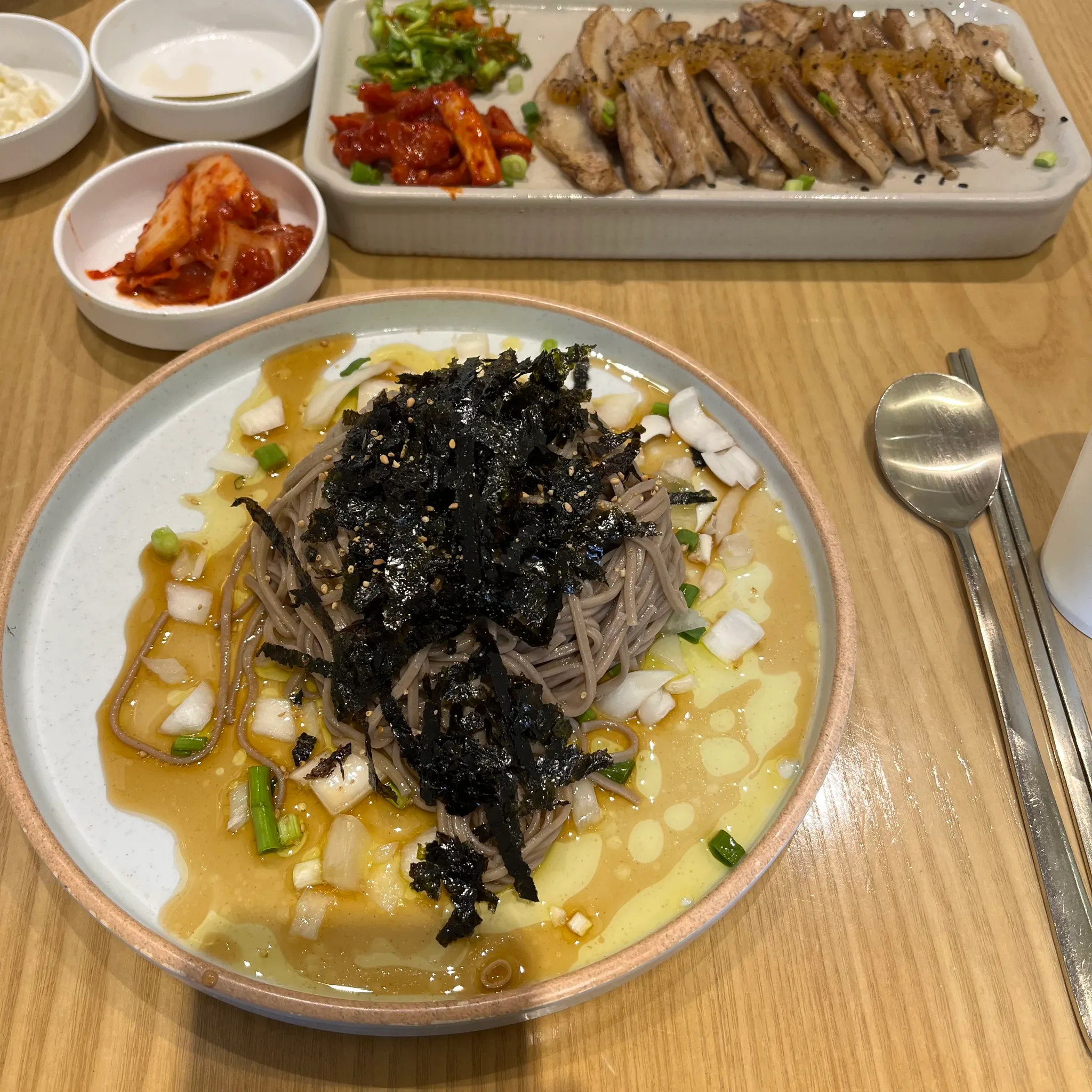 들기름메밀국수(간장)과 마늘 항정 수육이 맛있음. 오픈런해봄.