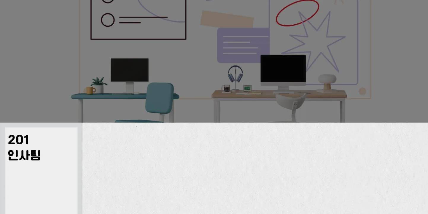 인사팀입니다. HRM(채용, 보상/징계, 퇴직 등)과 HRD(조직문화, 조직 교육 등)을 담당합니다. 현재 연말정산으로 인하여 자리에 없을 수 있습니다.
