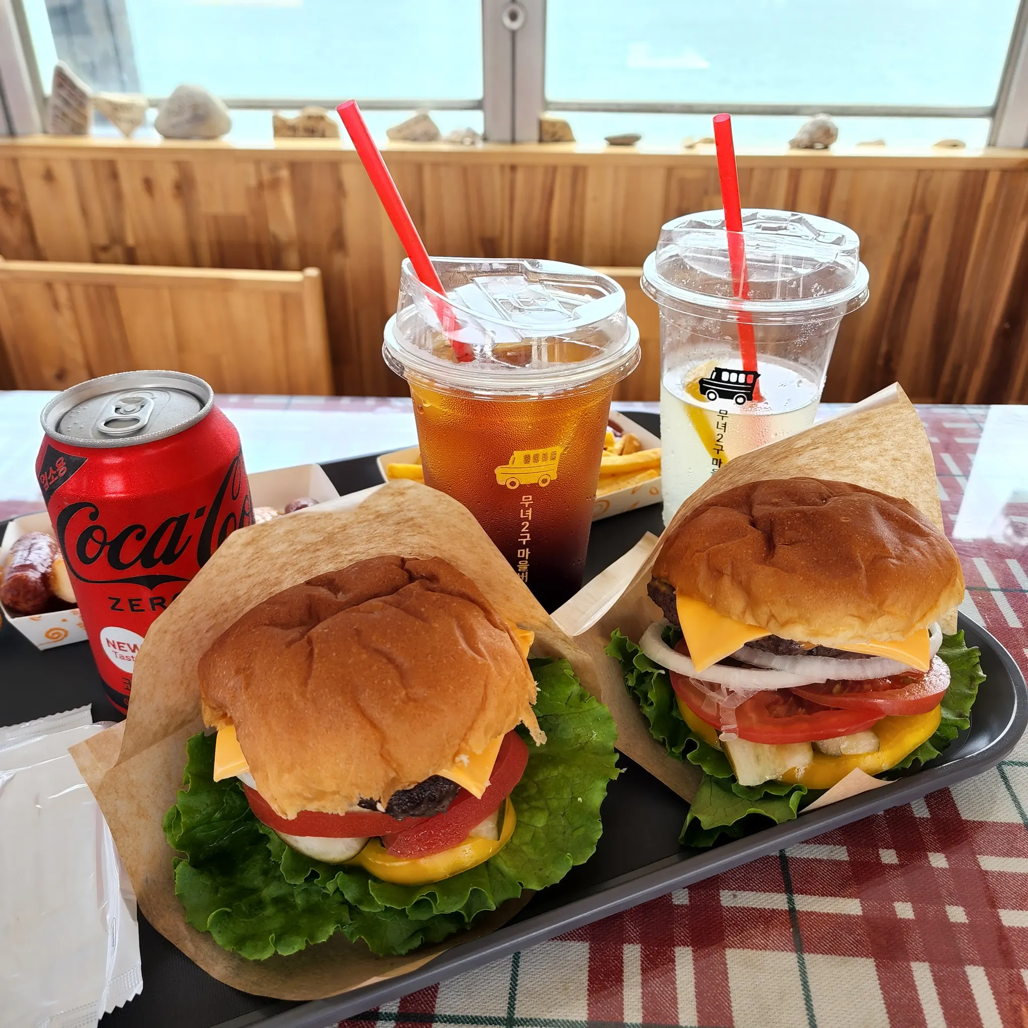 군산의 섬 ‘선유도’로 놀러가면서 들러볼 만한 수제버거 맛집! 미국 스쿨버스 배경과 바다 배경으로 사진까지 찍을 수 있는 사진 맛집!