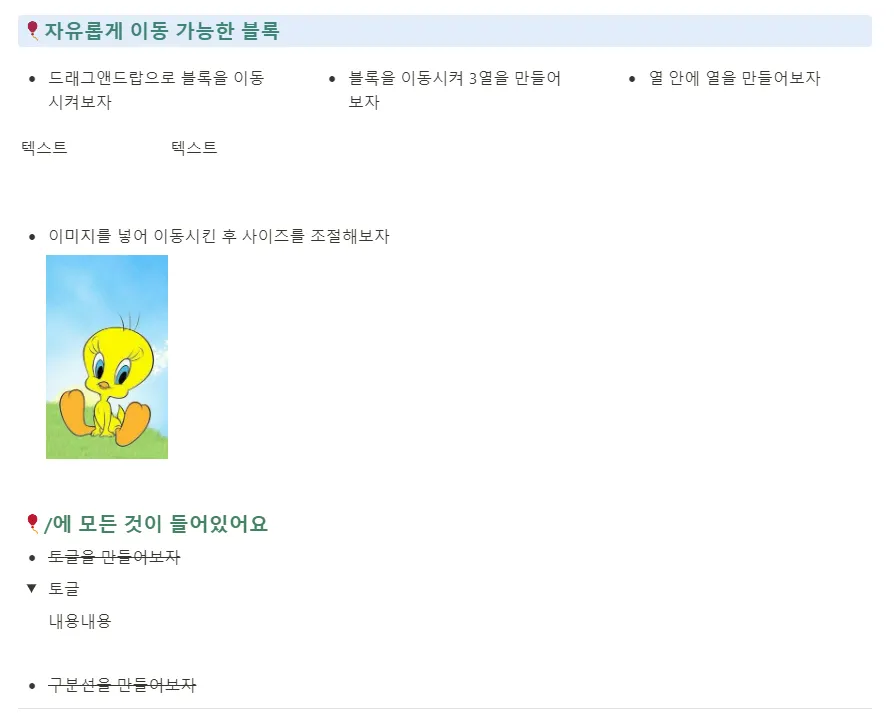 1. 드래그 앤 드랍으로 블록이동시키기