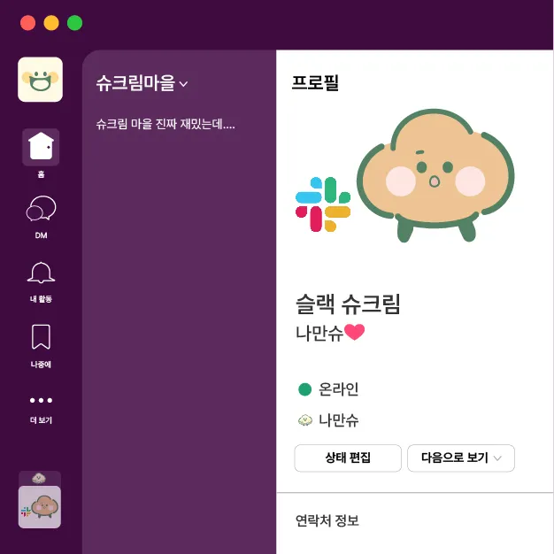 "나만의 슈크림을 인증하면, 특별한 선물이 기다리고 있어요!"슬랙(슈크림마을)