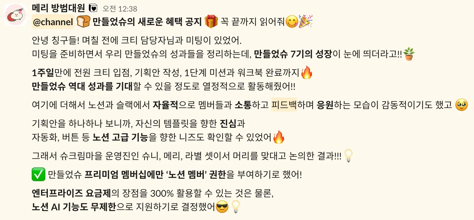 엔터프라이즈 요금제의 모든 기능부터 노션 AI 사용 기회까지 스스로 쟁취한 멤버들!!