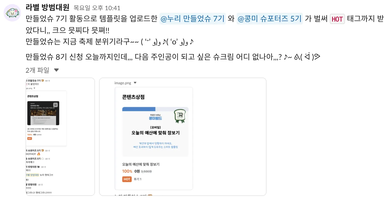 상상하던 템풀릿이 현실로!! 템플릿을 세상에 선보인 만들었슈 7기 멤버들~