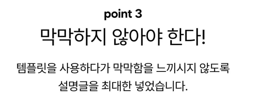 템플릿 대상이 가질 고민을 언급하면서 템플릿의 필요성을 보여주는 상세페이지