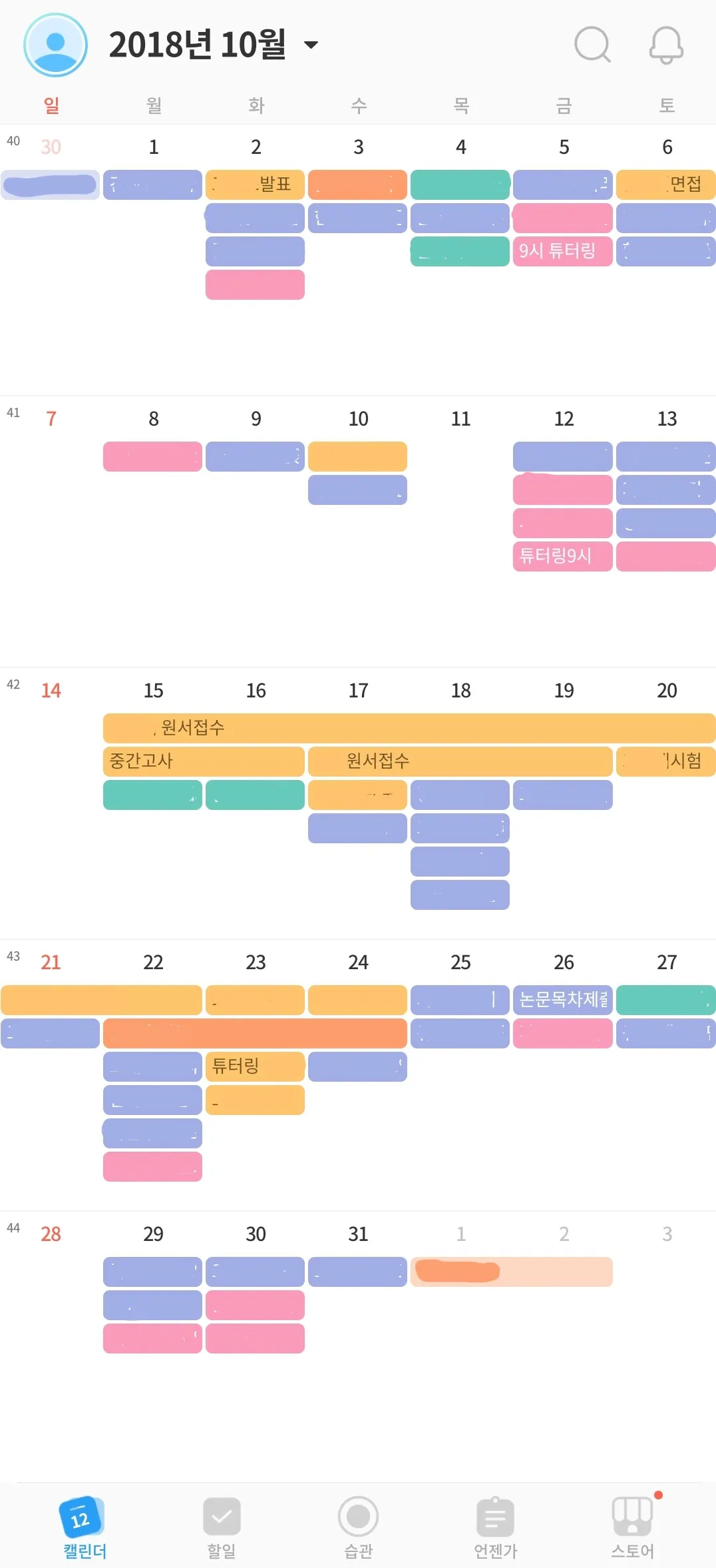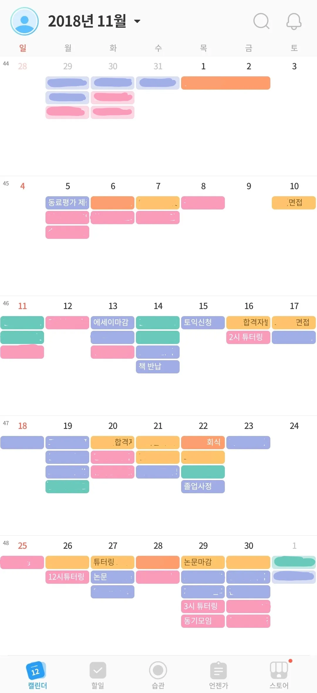 일정별로 색으로 구분하니까 넘 좋았지