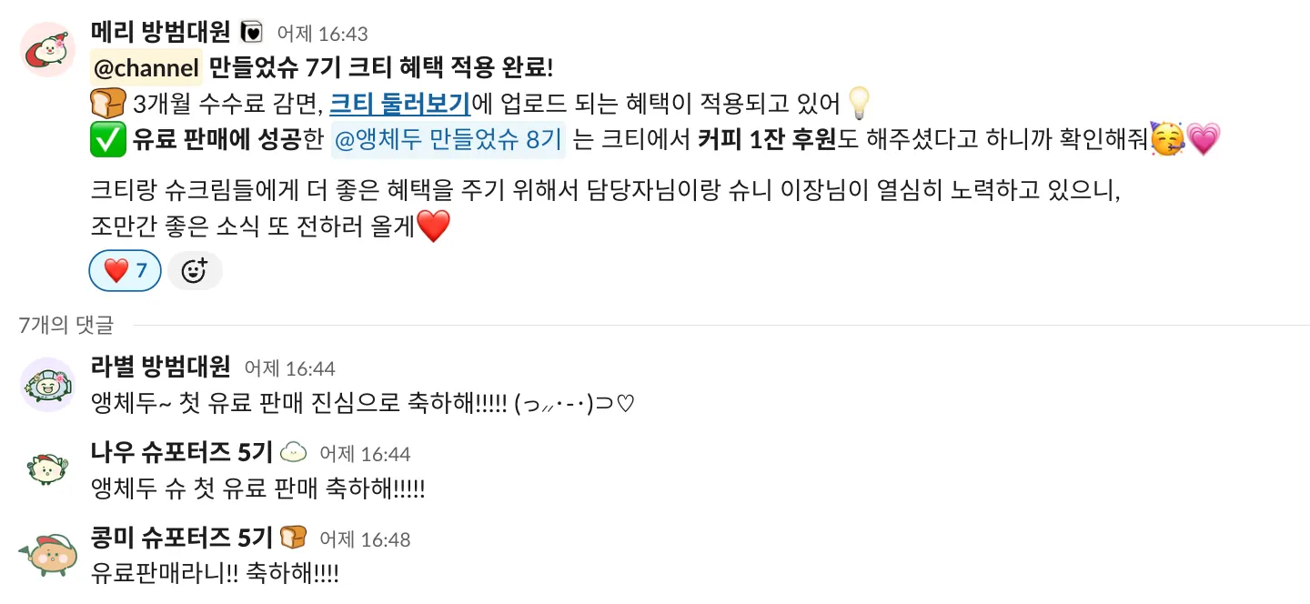 크티 플레이스의 HOT 태그도 받고, 실제 판매까지 성공한 7기 친구들 아주 멋져요!! (*,,ÒㅅÓ,,)و