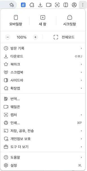 그리곤 우측 상단에 세로 삼점 아이콘으로 메뉴을 열어서