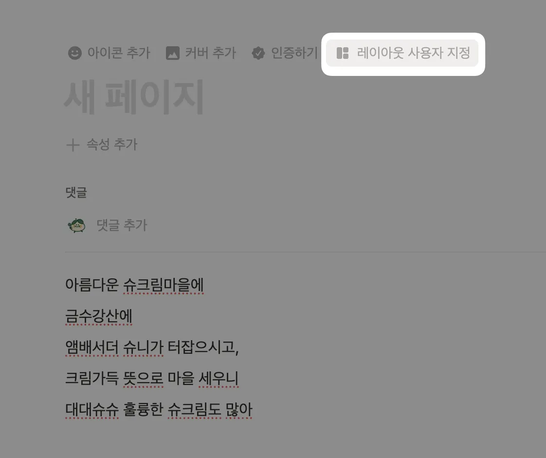 우선 페이지 제목 바로 위에 마우스를 올리면 나오는 레이아웃 사용자 지정을 눌러줘