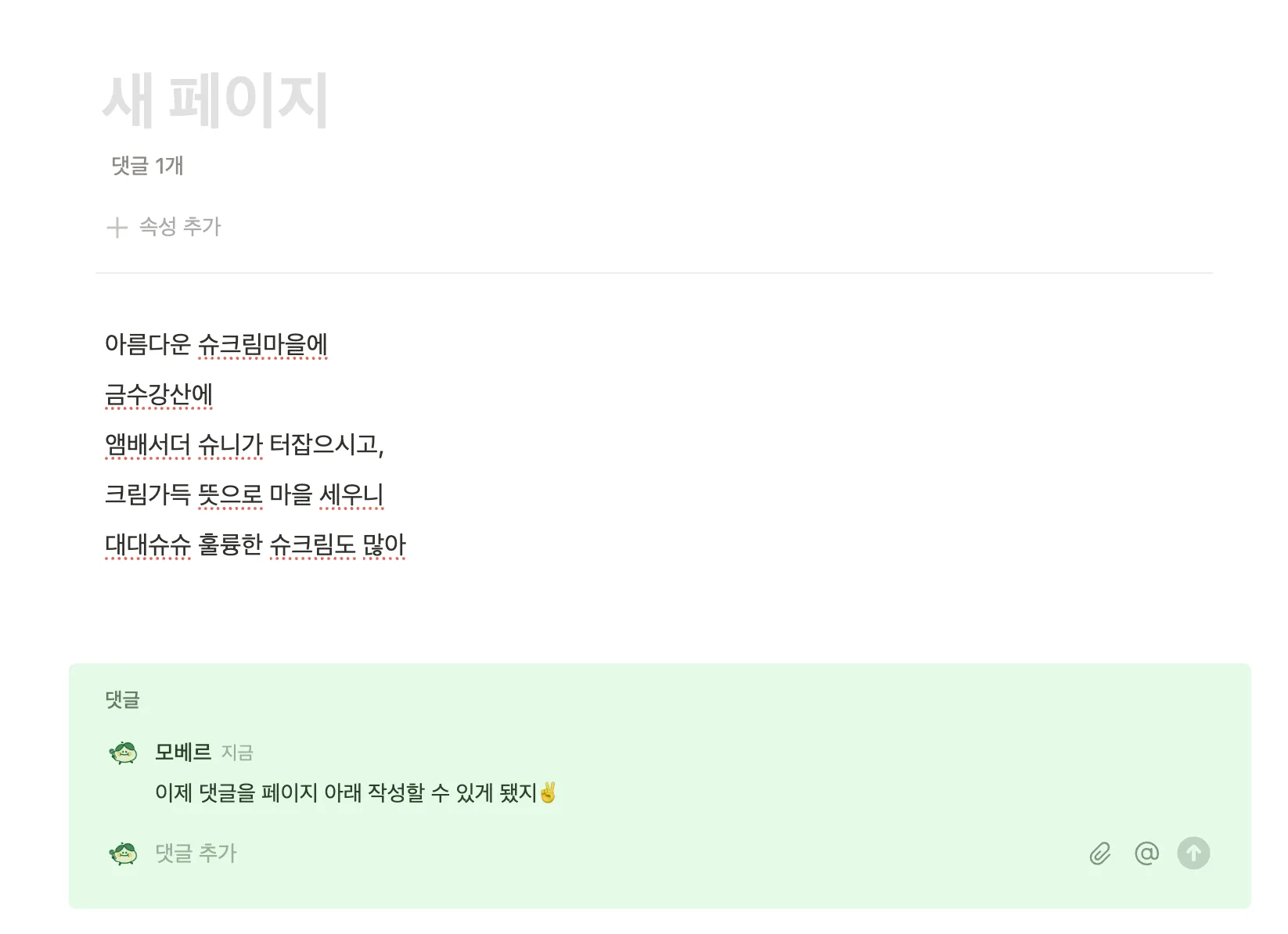 항상 페이지 내부(특히 데이터베이스에 속한 페이지)에서는 댓글을 보게 되어 있었어.