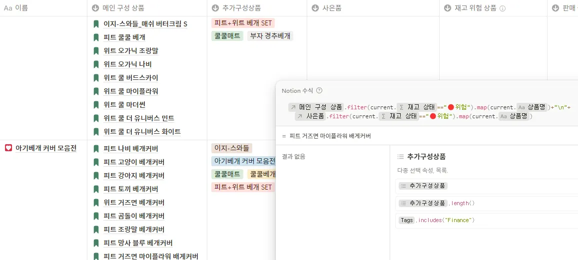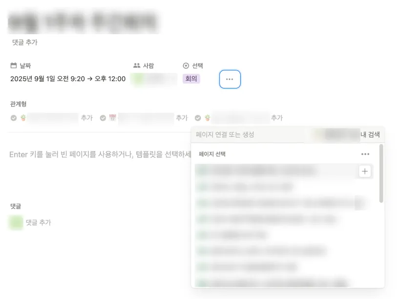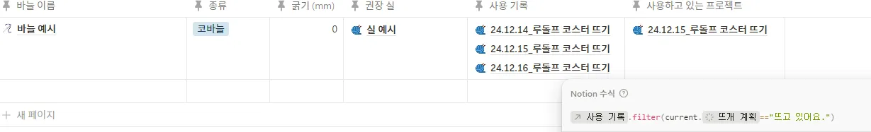 클릭하면 이렇게 관계형된 DB의 페이지가 리스트업 되징