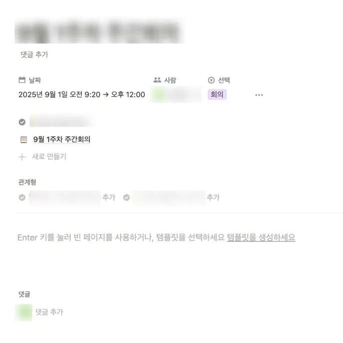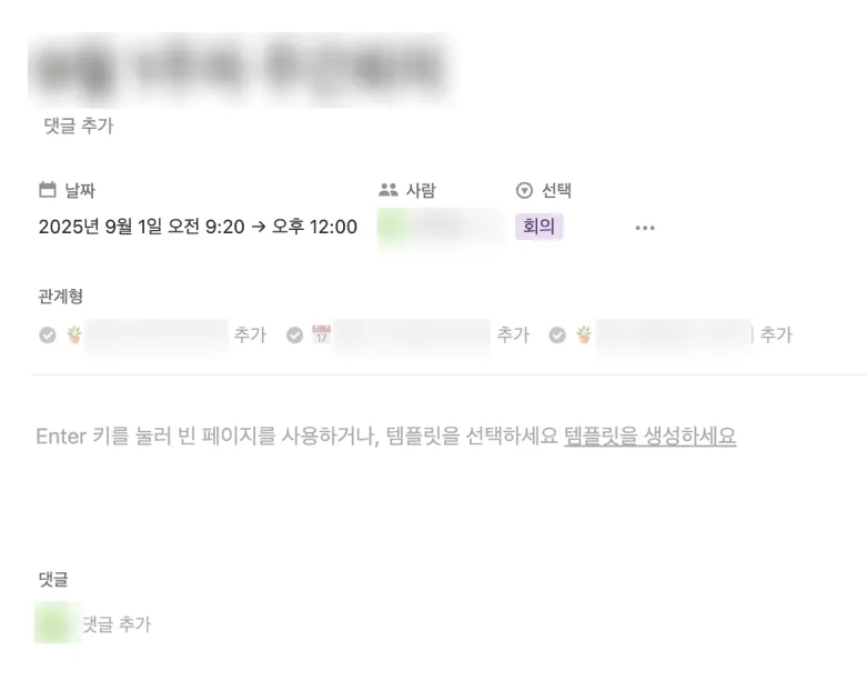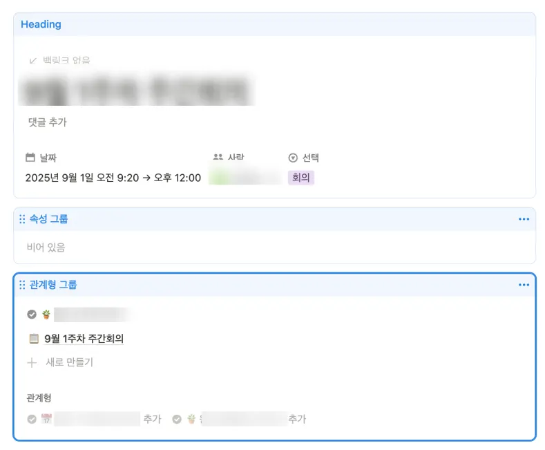 관계형 속성이 무려 3개!!로 데이터베이스 4개가 연결되어 있는 페이지야.