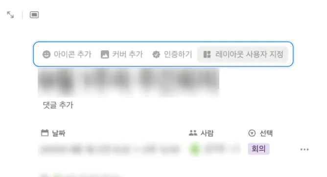 데이터베이스의 페이지 제목 바로 위에 마우스를 올려보면 이런 설정 바 가 떠