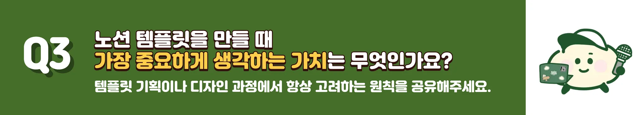 아직 많이 만들지 않아서 정확하게 이거다!라고 딱 서지 않은 것 같기도 해요. 그때 그때 다르다는 느낌도 들고. 하지만 쓰는 사람이 쉬워야 된다는 생각이 계속 있어요. 만드는 나는 고민하고, 어렵더라도 쓰는 사람은 설명을 보자마자, 또는 설명이 없더라도 쓸 수 있는 템플릿이면 좋겠다. 그렇게 생각하면서 만들고 있어요.