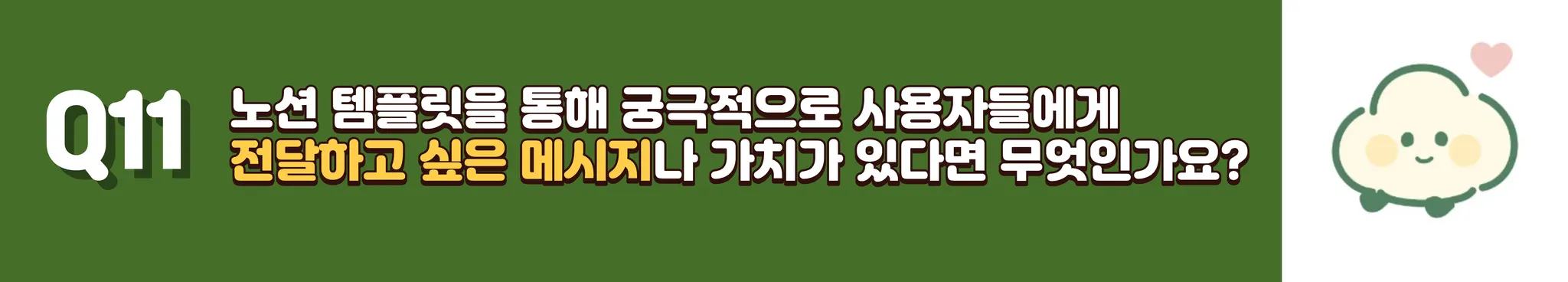 나에게서 우러나지 않는 것을 억지로 만들어내지 않는 것. 더 쉽게 말해서 내가 안 쓸 템플릿을 만들지 않는다 일 것 같아요. 내가 안 쓸 템플릿을 만든다면, 이 템플릿을 쓰게 될 사람들이 뭘 필요로 하고, 뭘 불편해 할 지 잘 모를테니까요. 지금은 그래서 내가 필요한 것, 쓰고 싶은 것, 내 불편을 해소하는 것 등 나와 비슷한 사람들에게 동질감이 닿을 수 있는 것에 좀 더 뾰족하게 집중해보고 싶어요. ‘내가 진짜 필요했던 거야!’라는 감정을 주는 템플릿을 만들 수 있음 참 좋겠어요. 그래서 평소에 제가 만들고 싶은 것들을 관찰합니다. 그걸 만들어요. 그게 지금 제가 크리에이터로서 가질 수 있는 가장 건강한 가치관일 것 같아요.