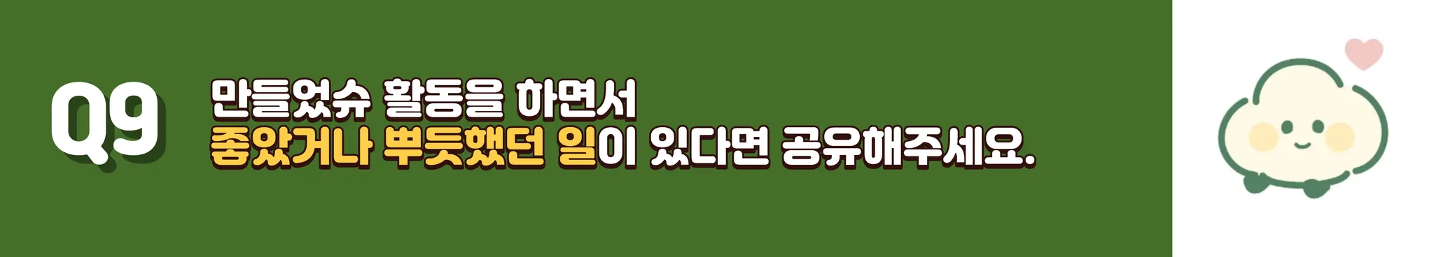 만들었슈의 보조 스태프도 돼보고 싶고, 다른 챌린지가 있을 때 참여해보고도 싶고.