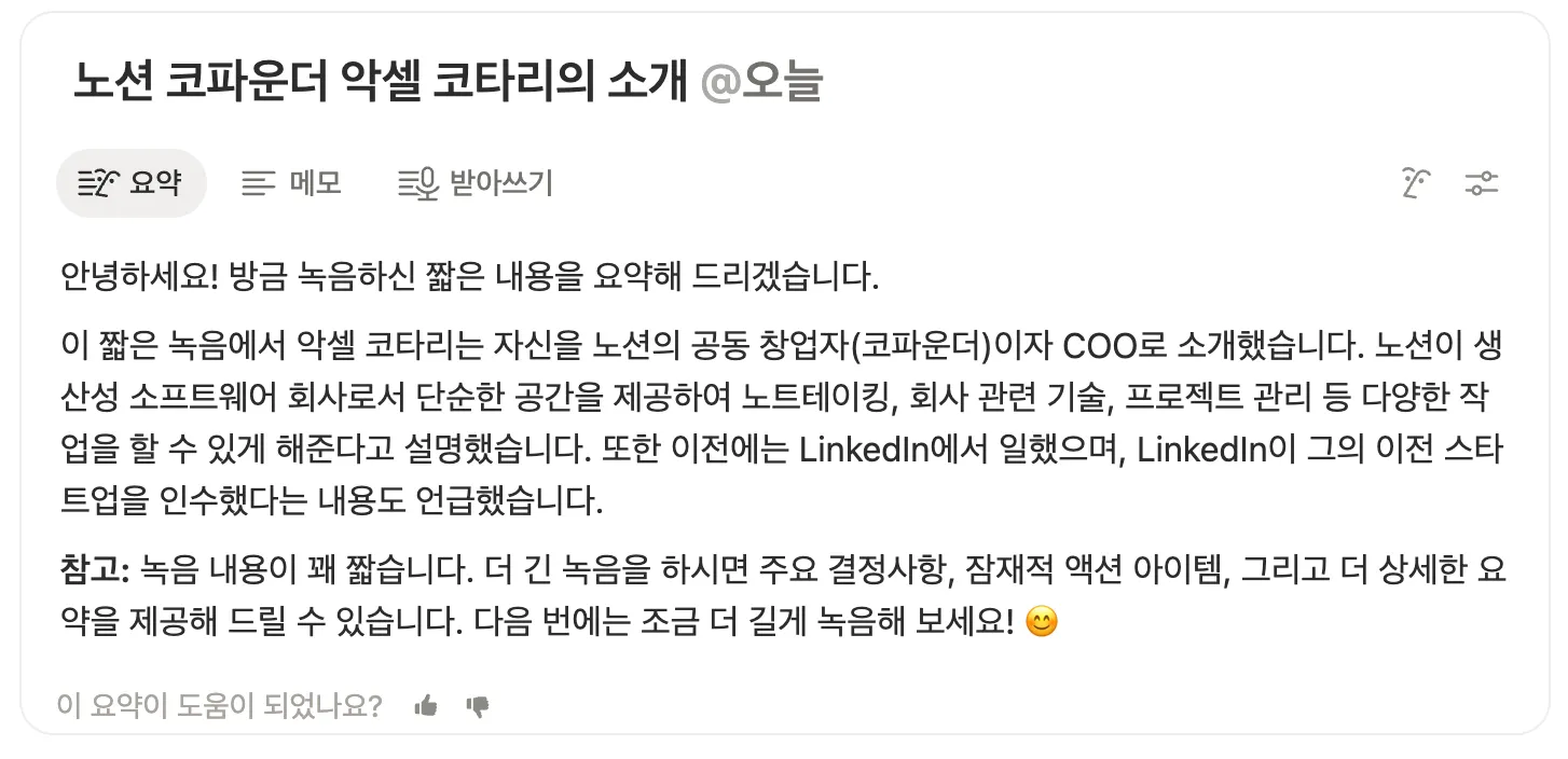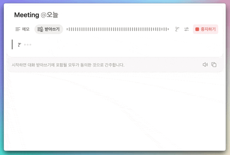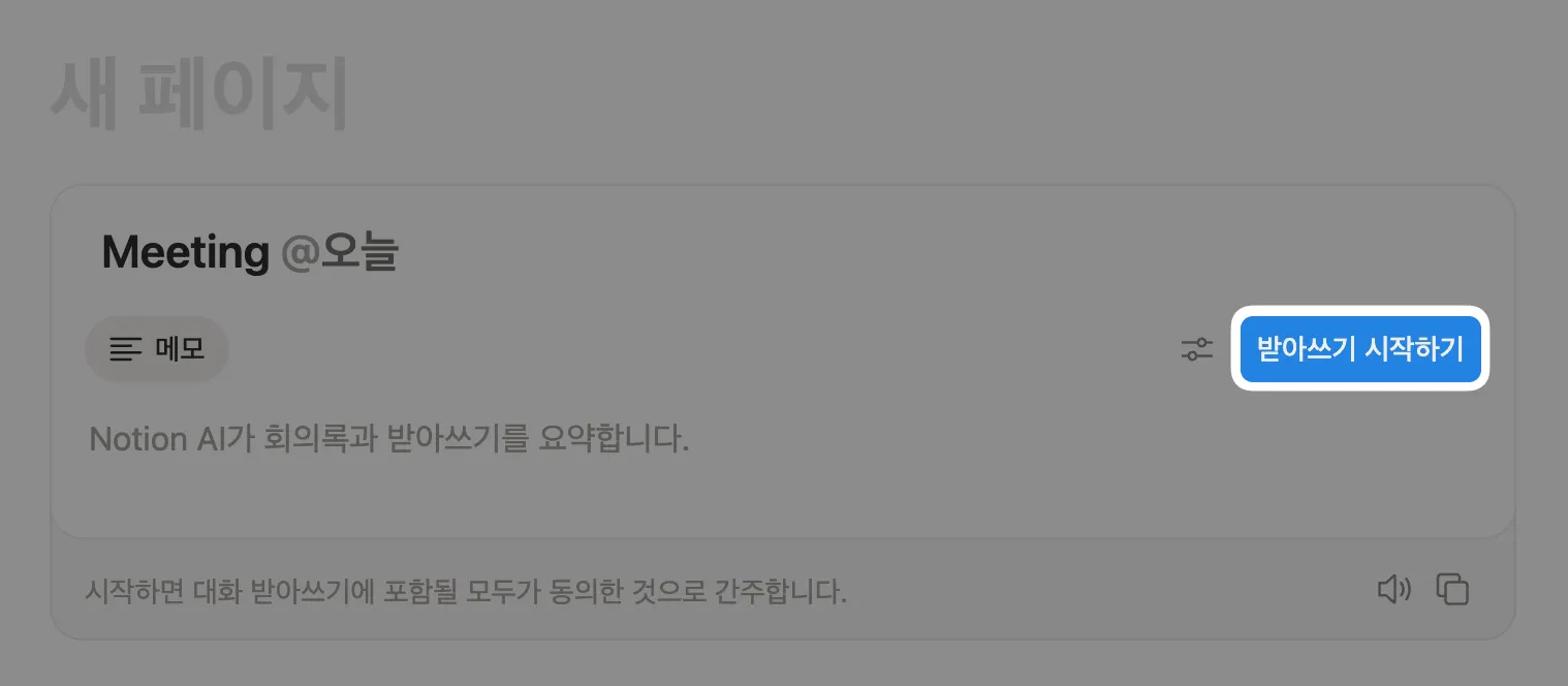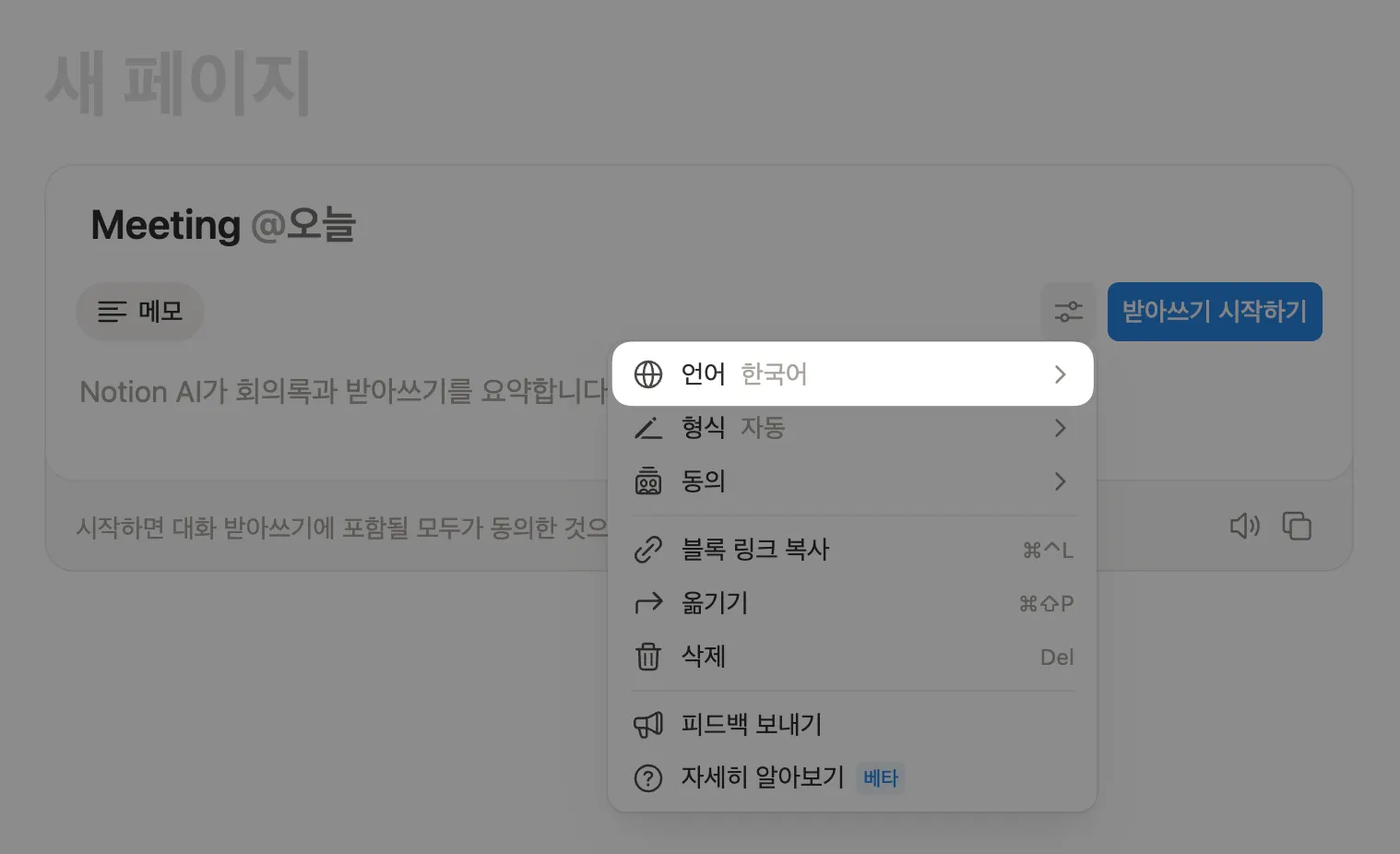 그리고 파란 받아쓰기 시작하기 버튼만 누르면 노션 AI가 모든 말을 녹음하지