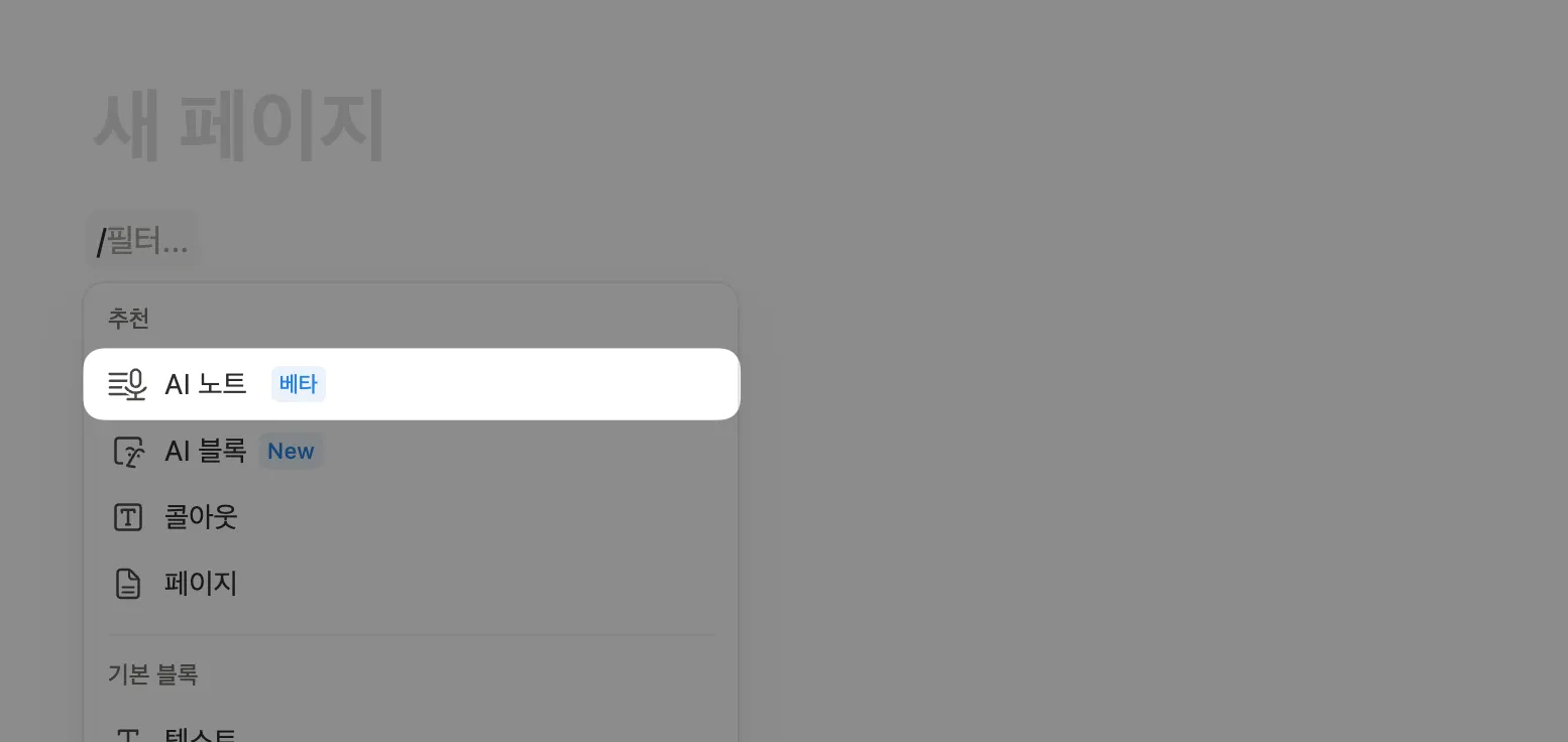 내가 원하는 페이지에 AI 노트 블록을 만들어줘.