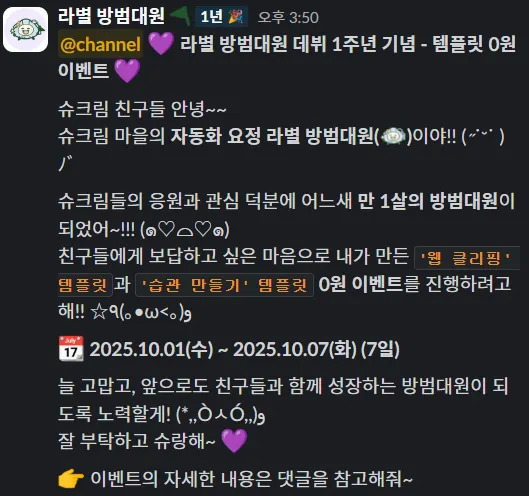 라별 방범대원의 1주년 이벤트!