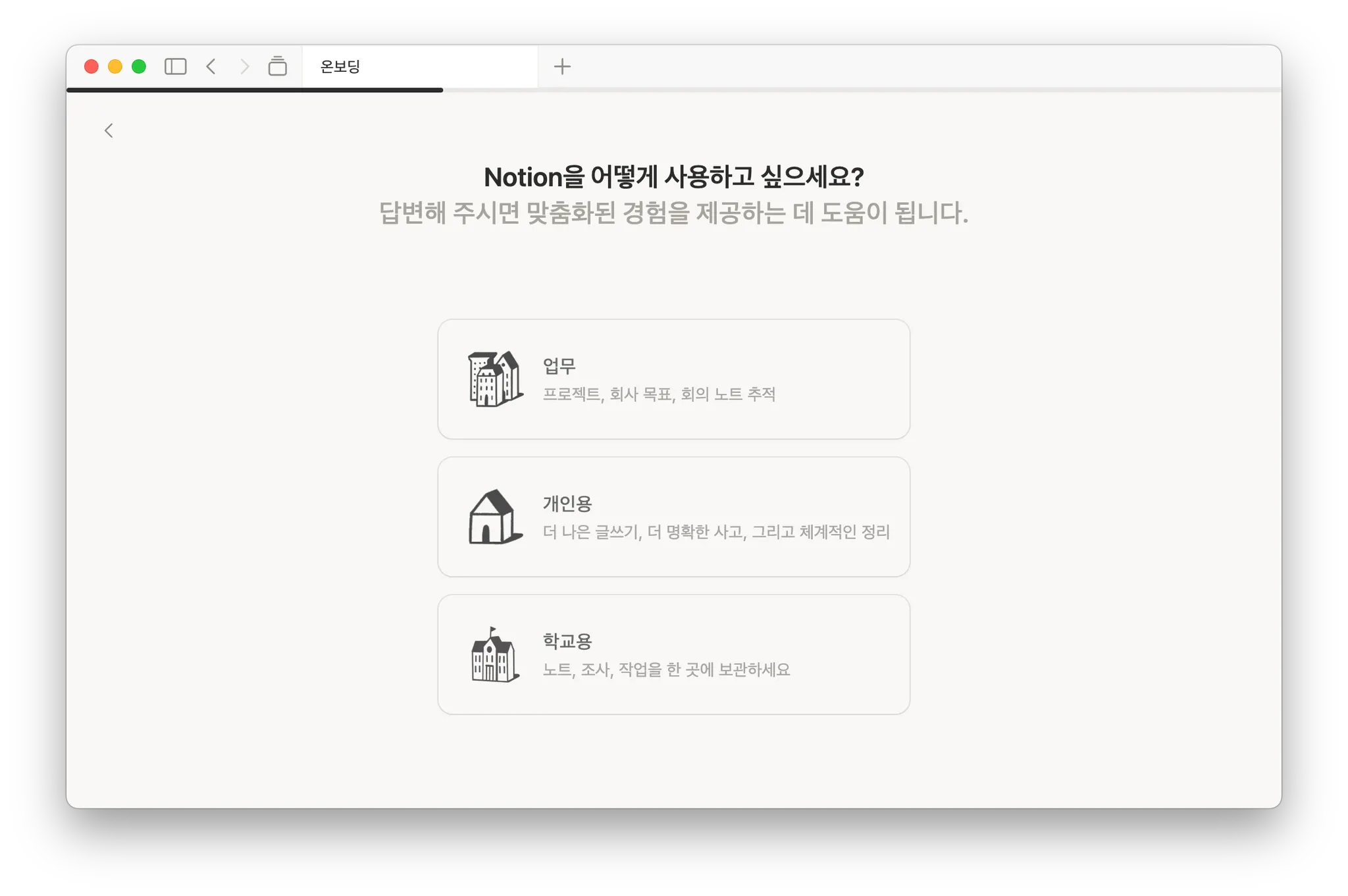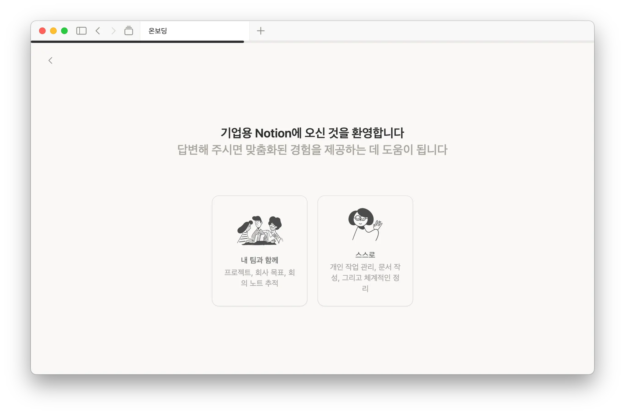 다들 Notion을 처음 시작하면 만나는 화면을 기억하고 있어?