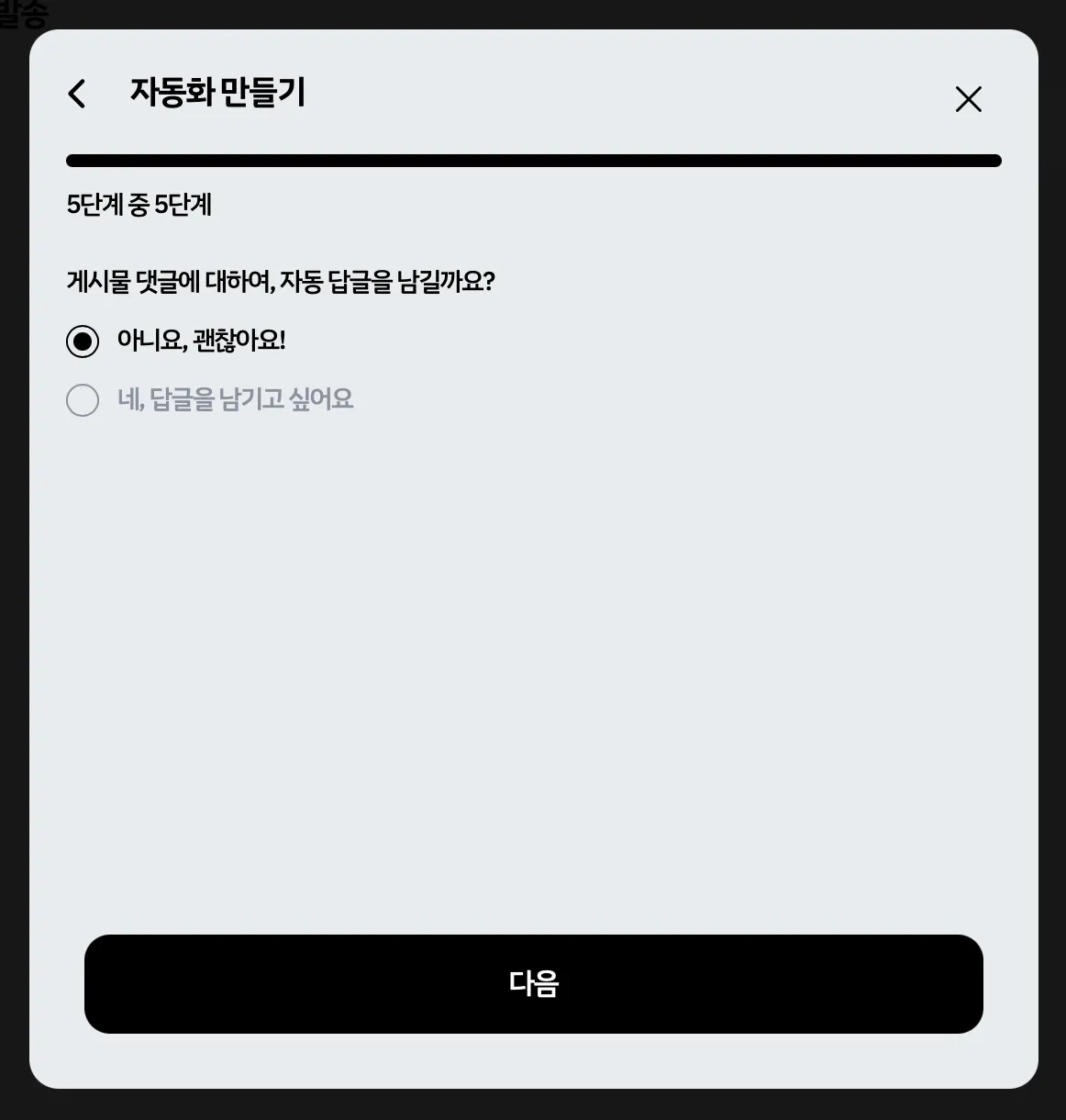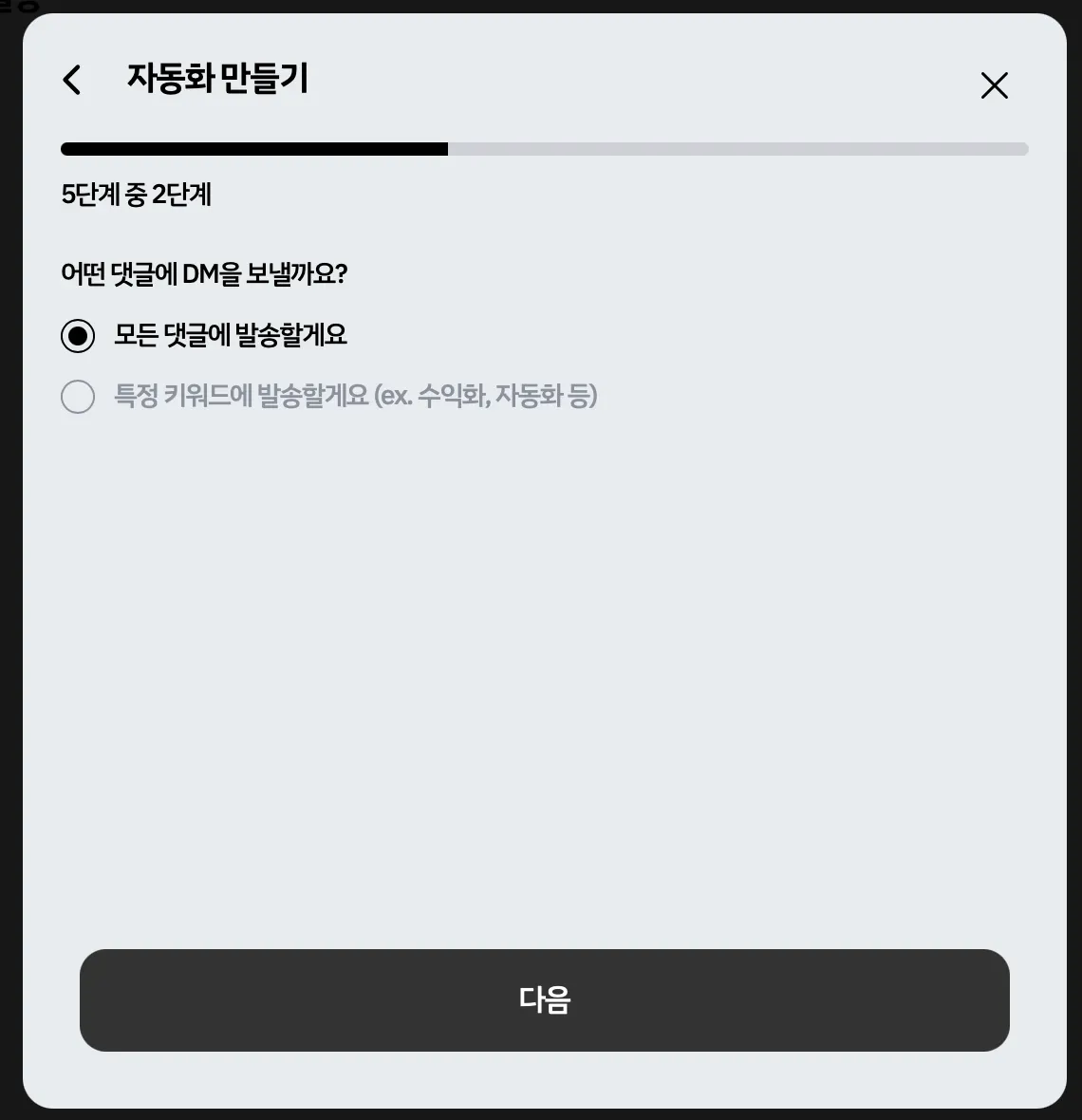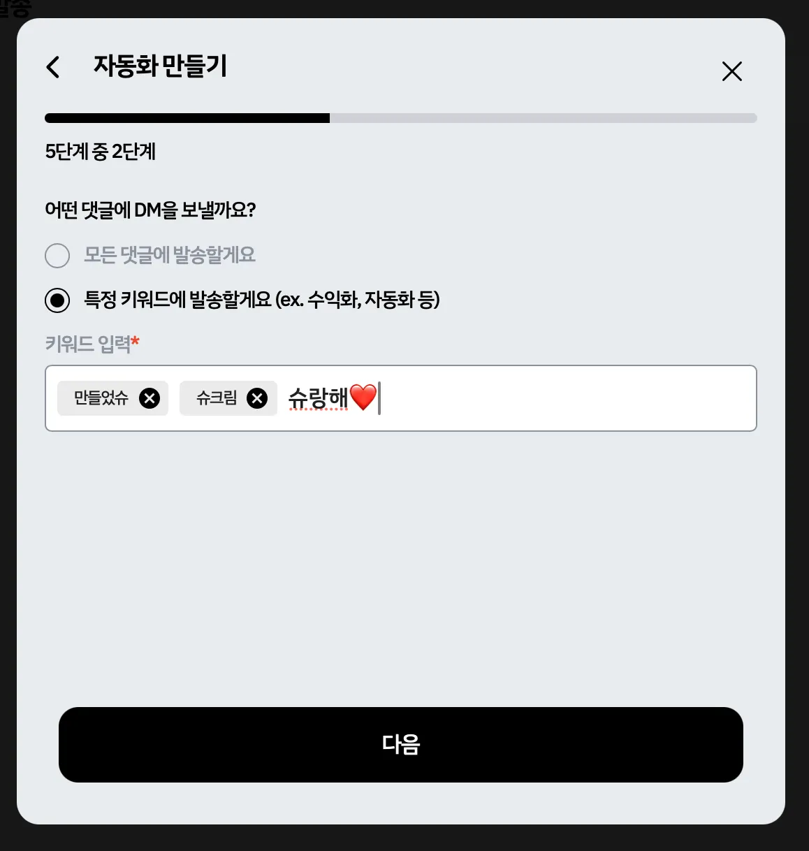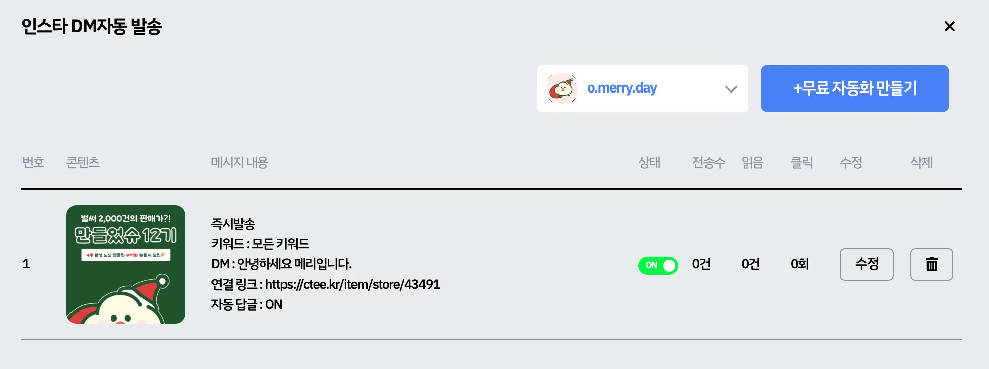 아래 내용은 자세한 설명이 없는 자동 DM 설정 과정 캡쳐본입니다.