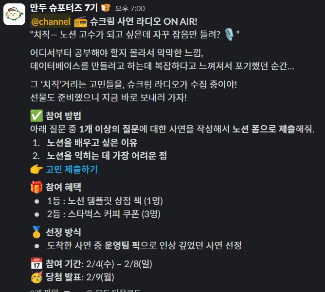 슈크림 사연 라디오 이벤트 | Notion