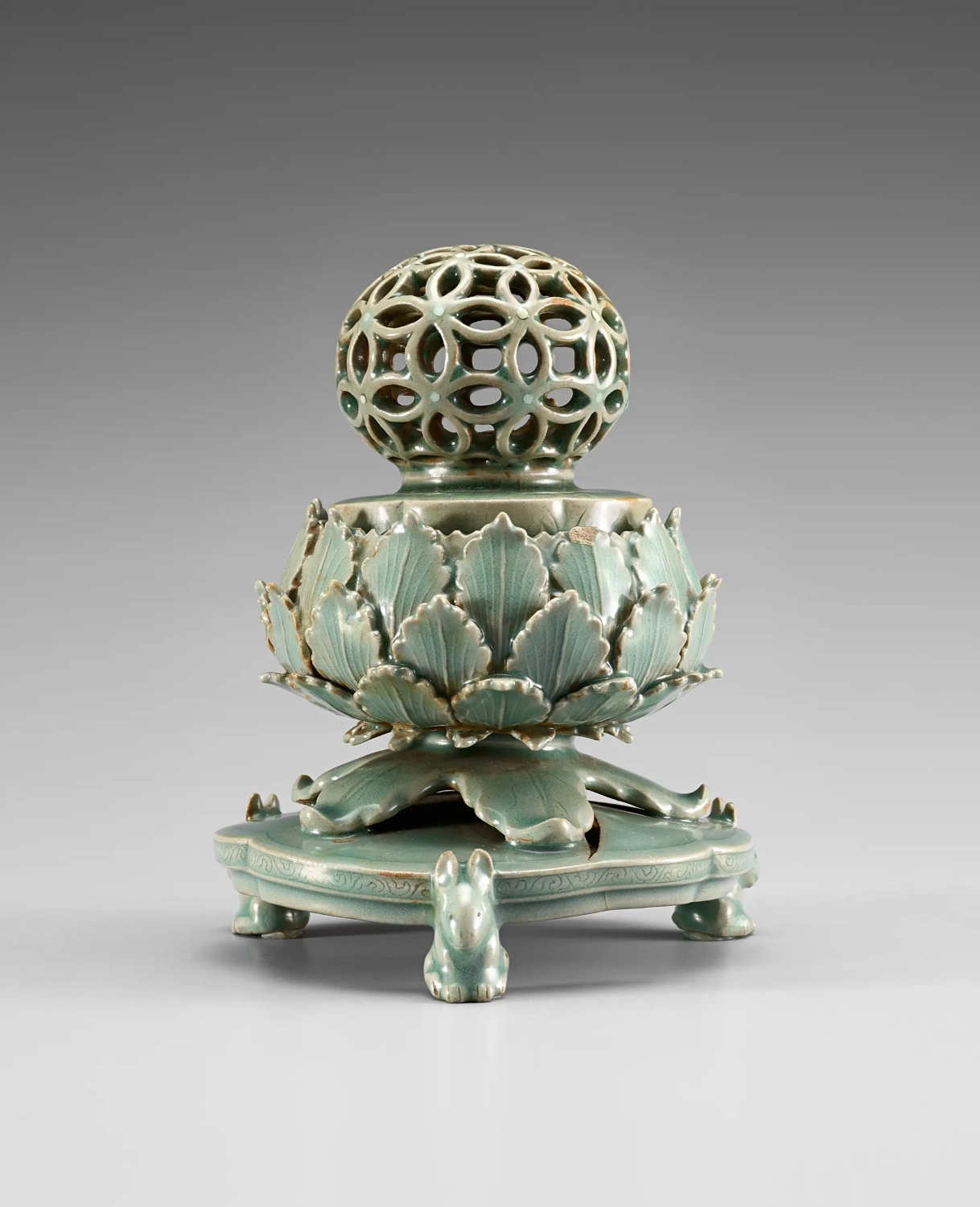청자 투각 칠보 무늬 향로,