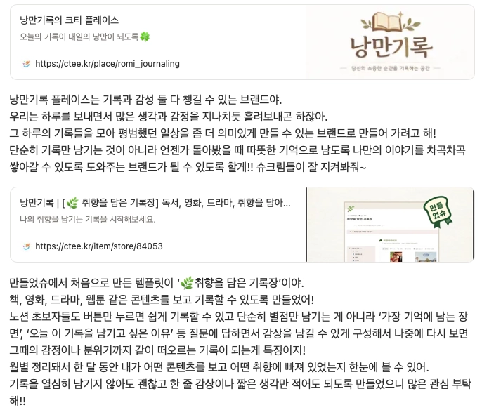 슈크림마을에서 30일 챌린지에 참여해 매일 기록하듯 템플릿을 만들다보니 자연스럽게 [상품화]에 관심이 생겼어!