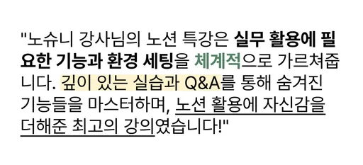 그래서 우리가 준비했어요. 당장 적용할 수 있는, 실전형 노션 강의를요.